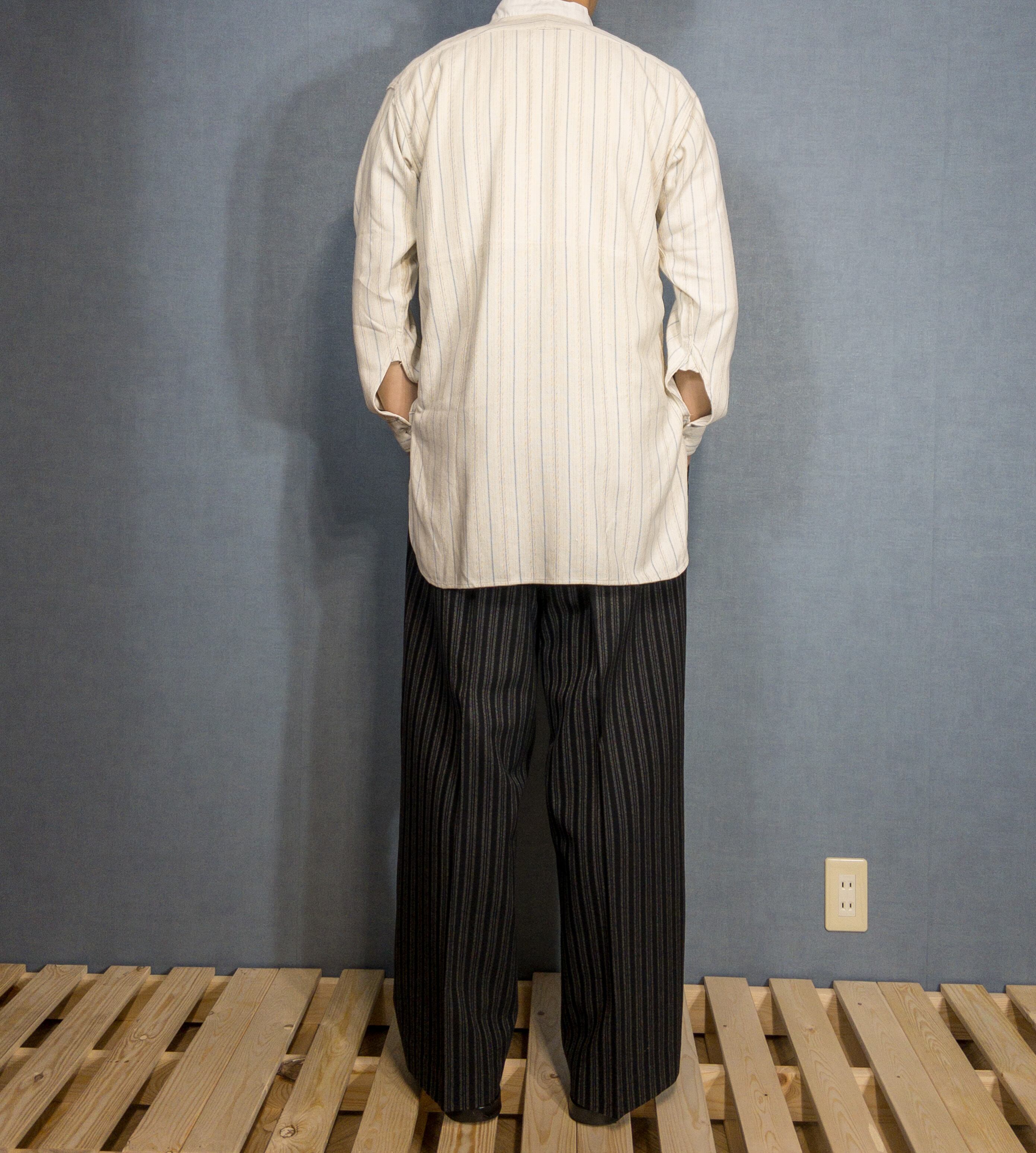 【1950s】"British Vintage Grandpa Blue × Stripe Smock Shirt", Good Condition!!
