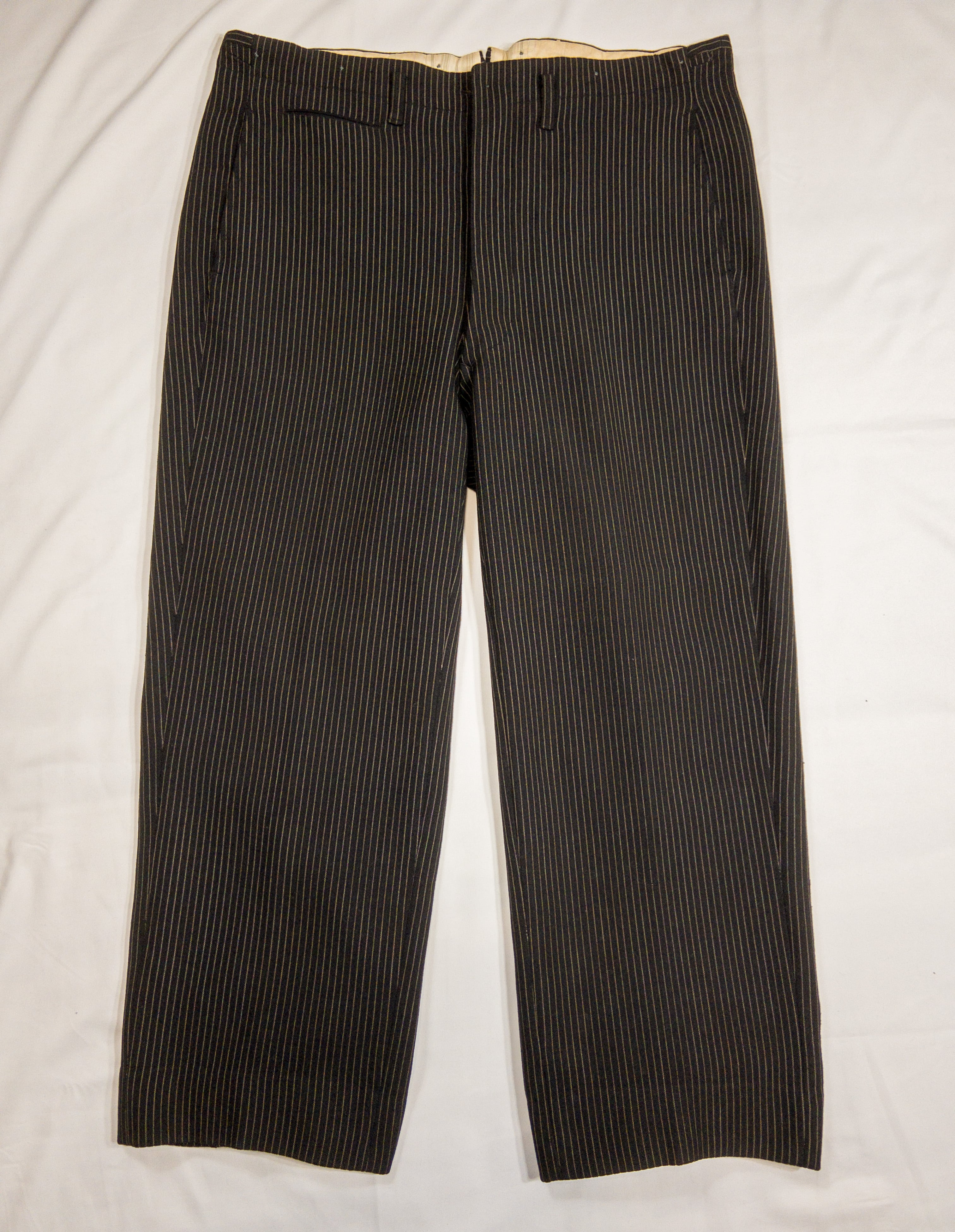 【1950s】"French Vintage Wool Black × Beige × Pinstripe Work Trousers", Good Condition!!