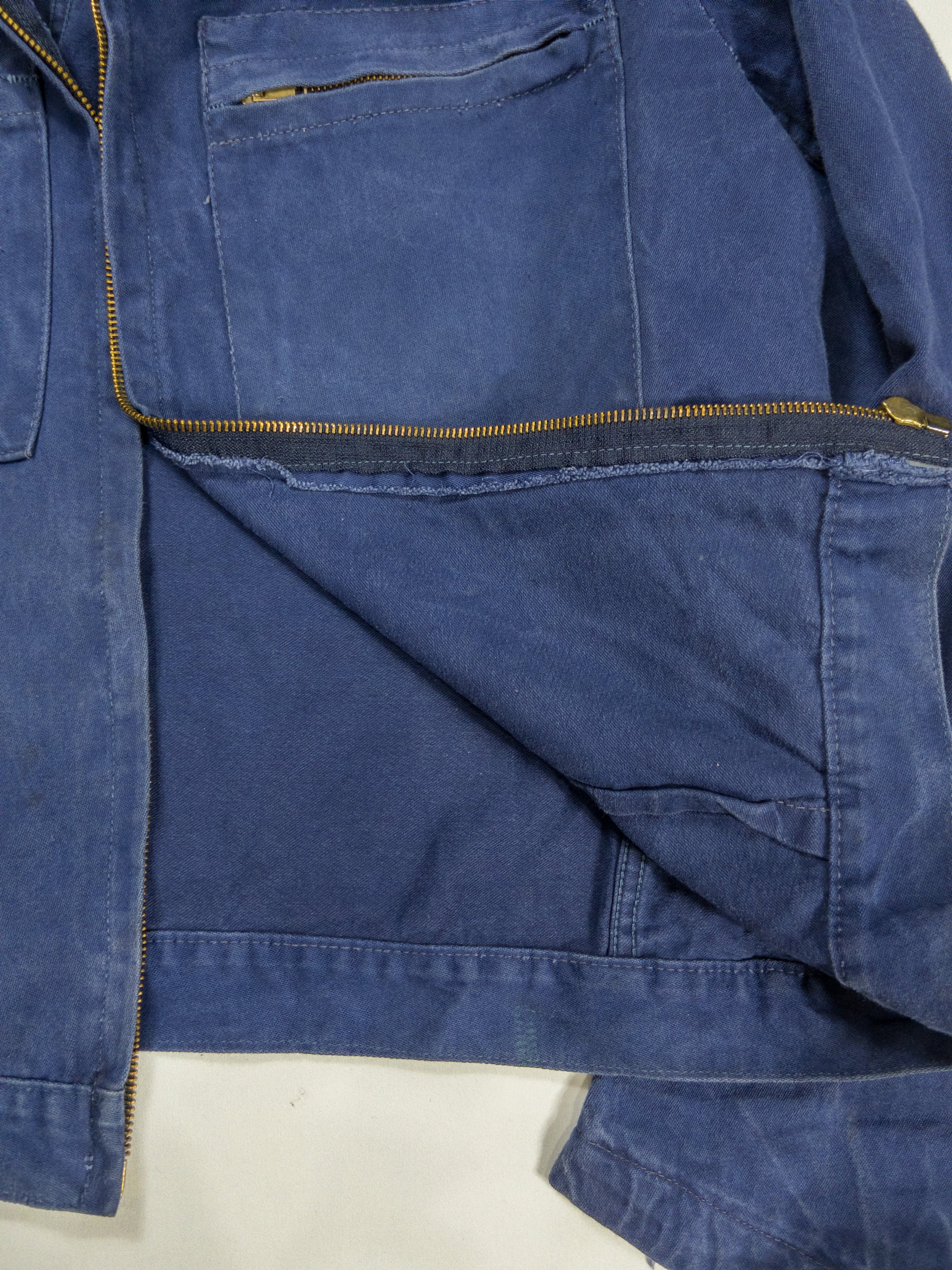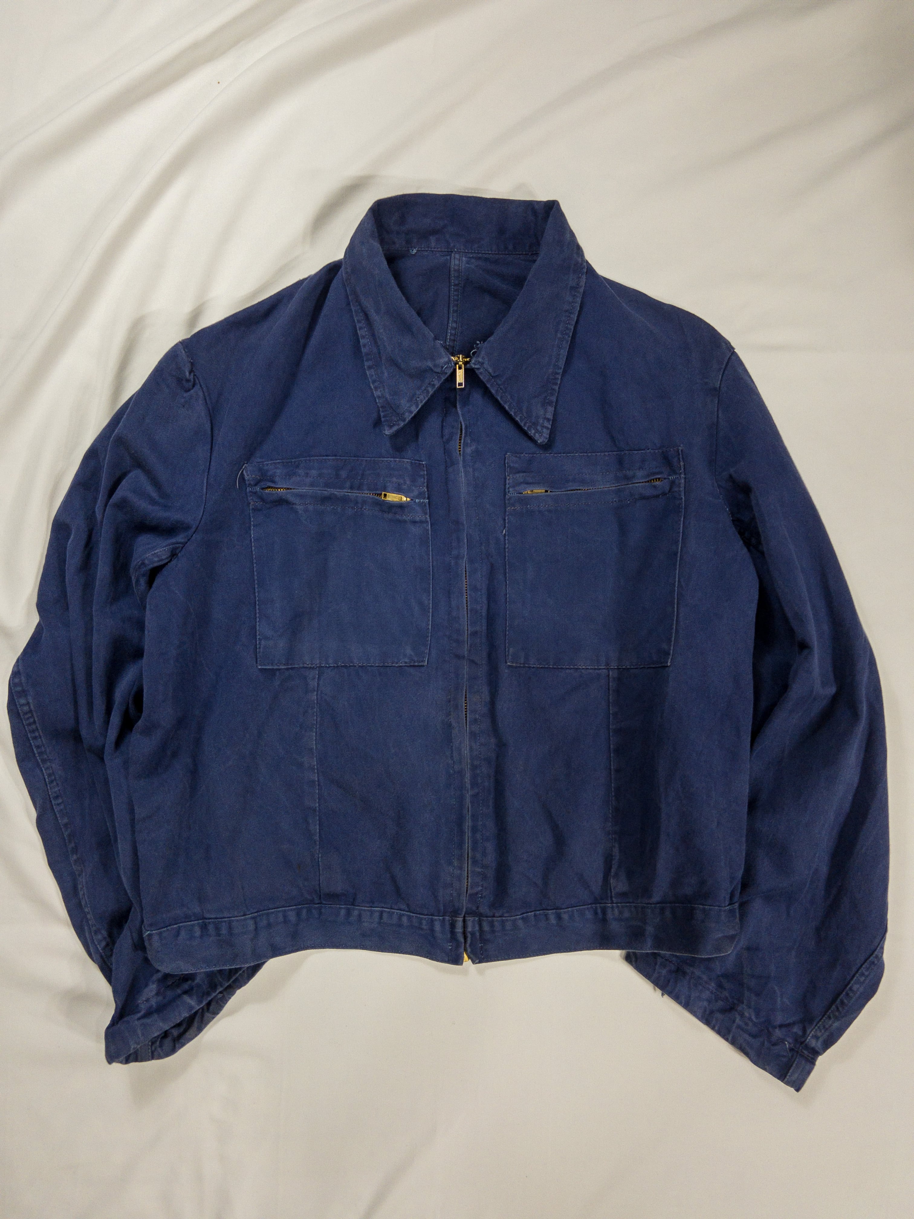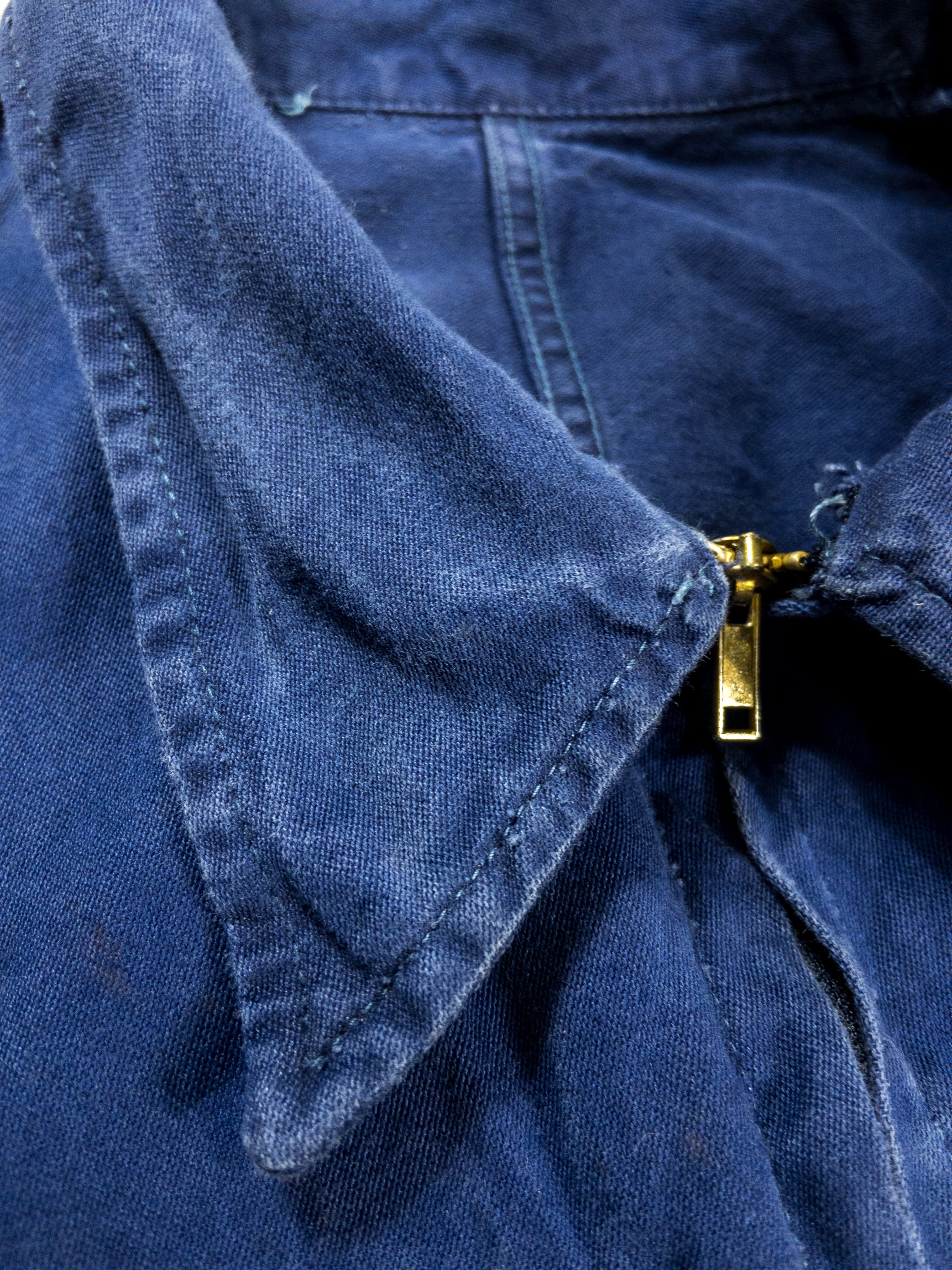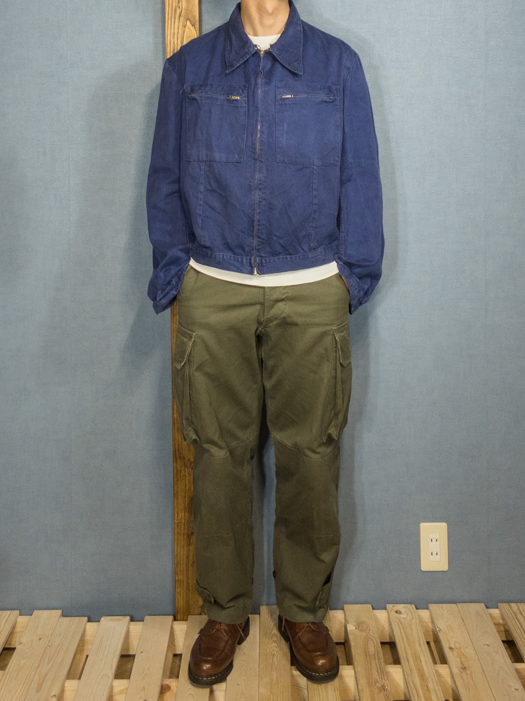 短い丈にどっぷりとゆとりのある袖が特徴で、金色のジップもアクセントになっていて非常に使い勝手の良いワークジャケットです。