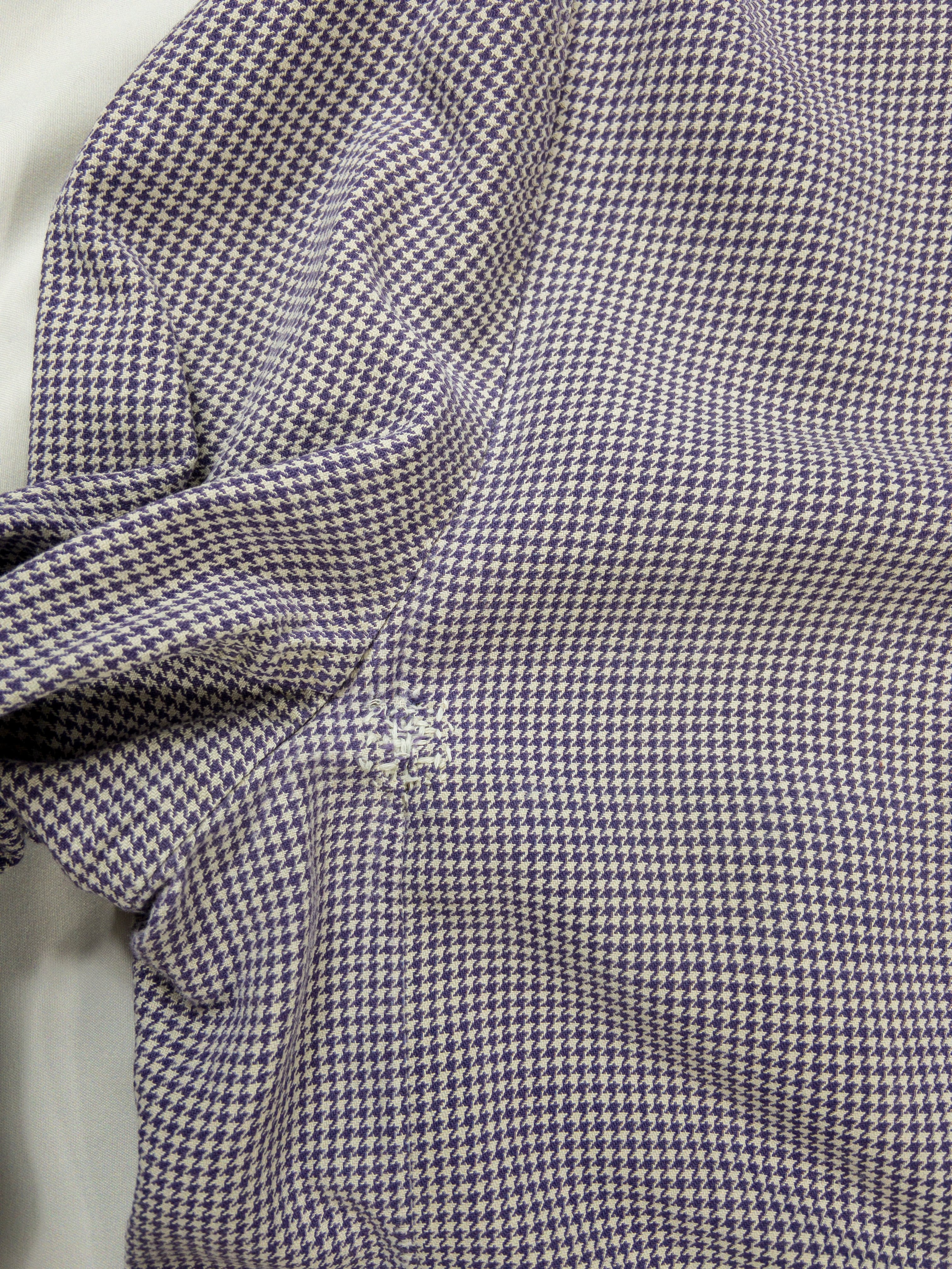 ホワイトベースにこちらはパープルの千鳥格子柄となっており、目の詰まったコットンではあるものの非常にしなやかな肌触り。