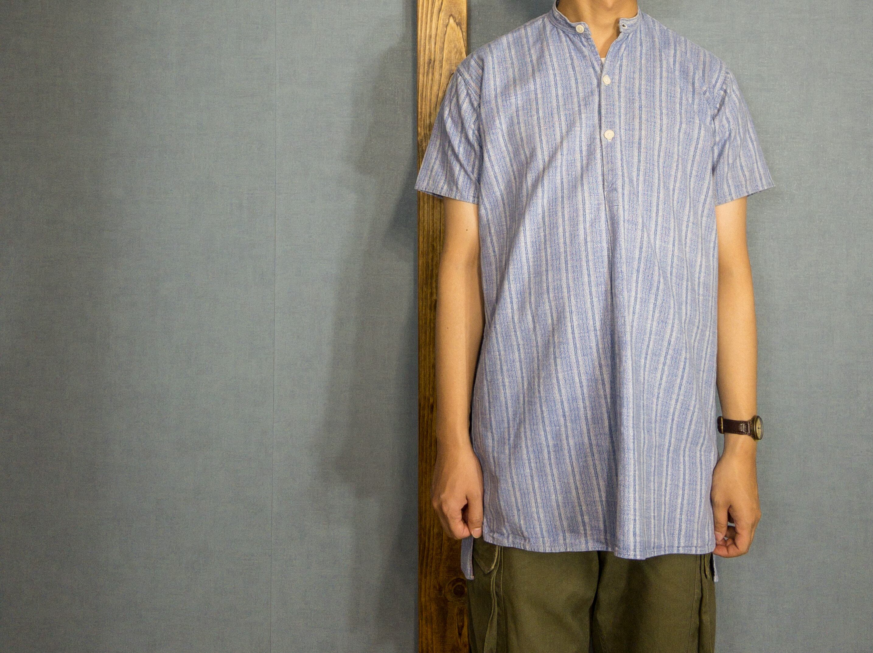 こちらはかなり珍しい半袖のグランパシャツで、生地感・ストライプのデザインは至高です。