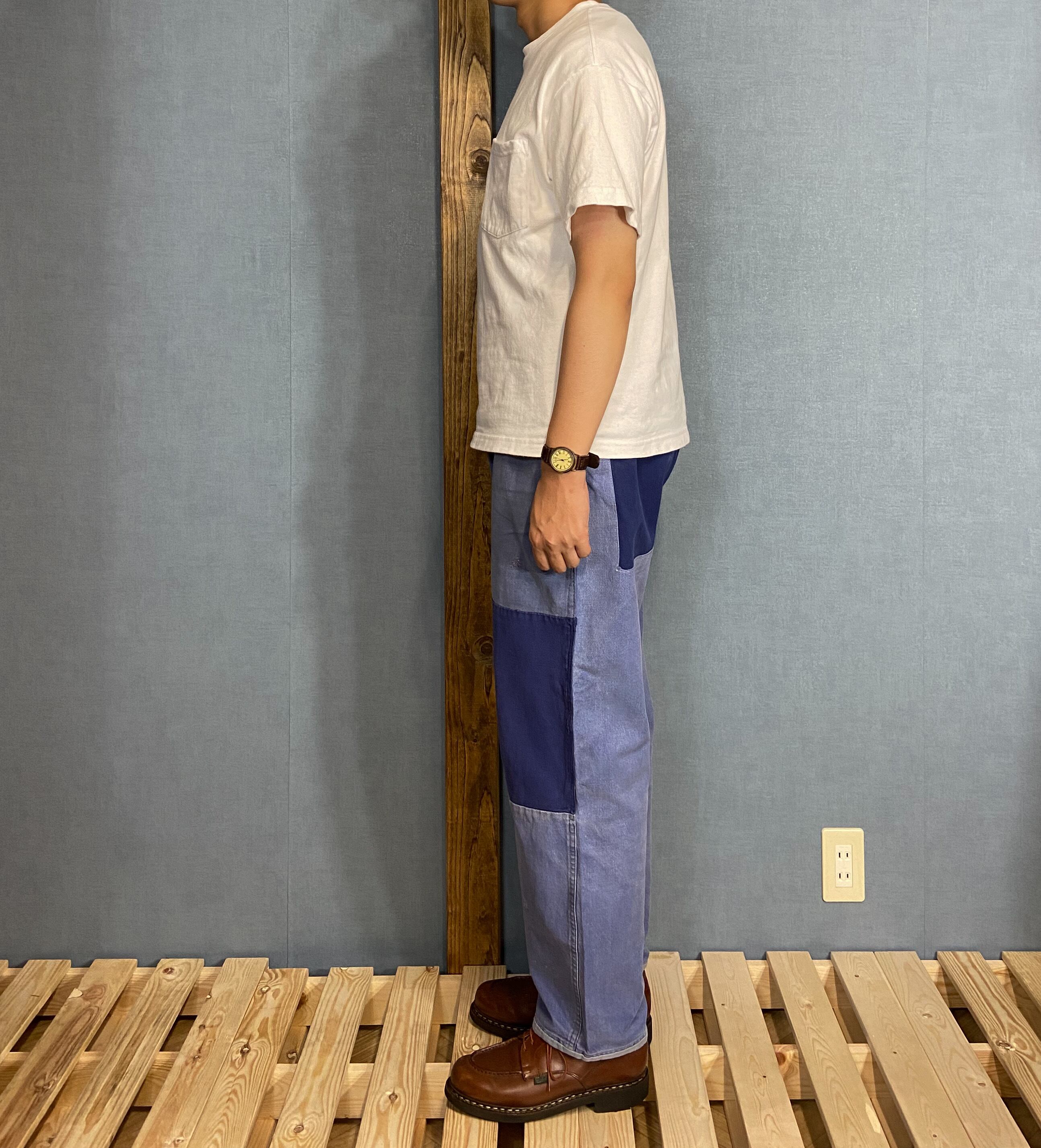 モールスキン素材ではなくコットンツイル生地のワークパンツでパッチワークは中々に珍しいかと。完全に1点物です。お探しだった方、この機会にいかがでしょうか。
