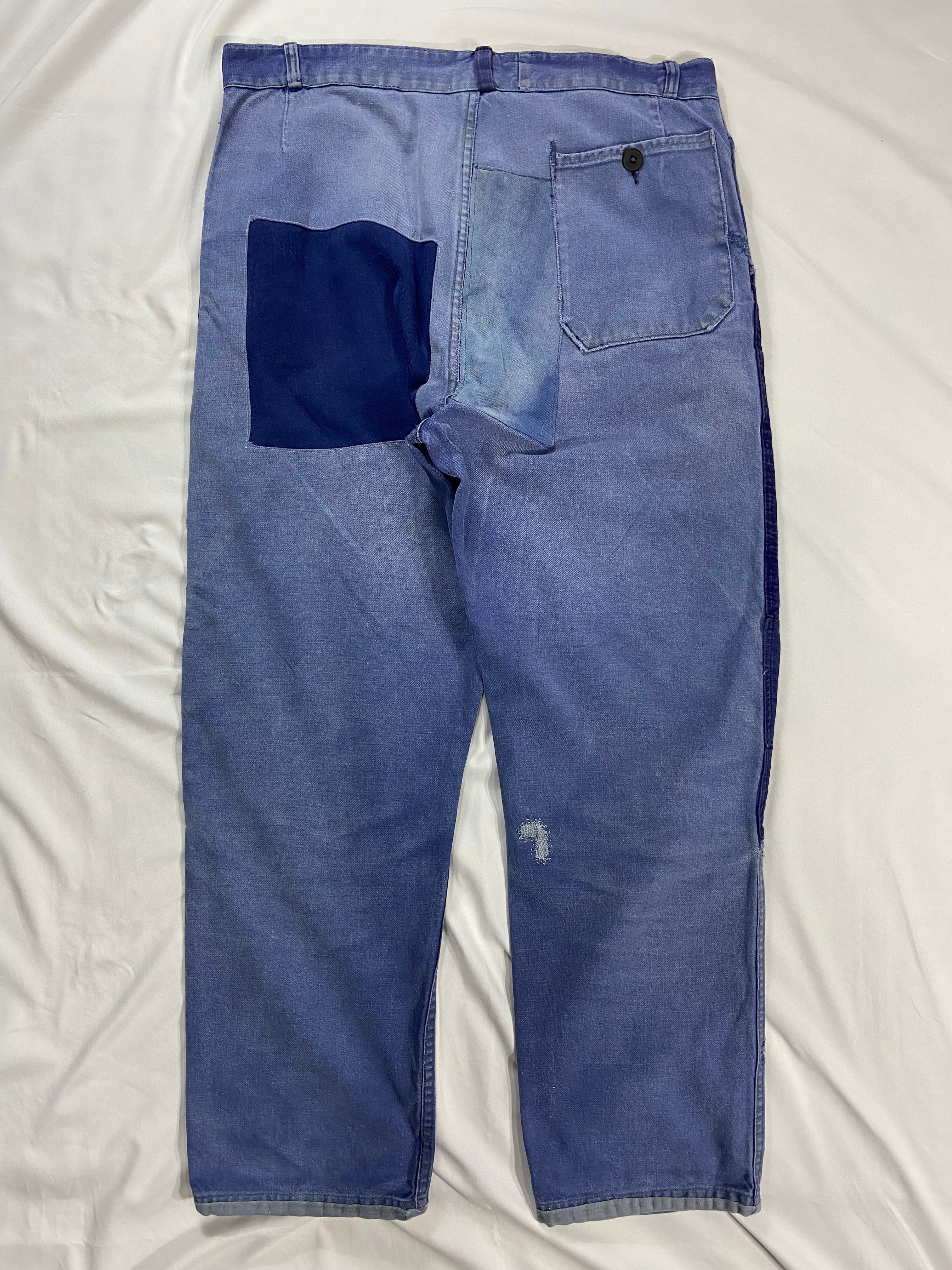 【1950s】French Vintage Cotton Twill PatchWorked Work Trousers, Good Fabric!!