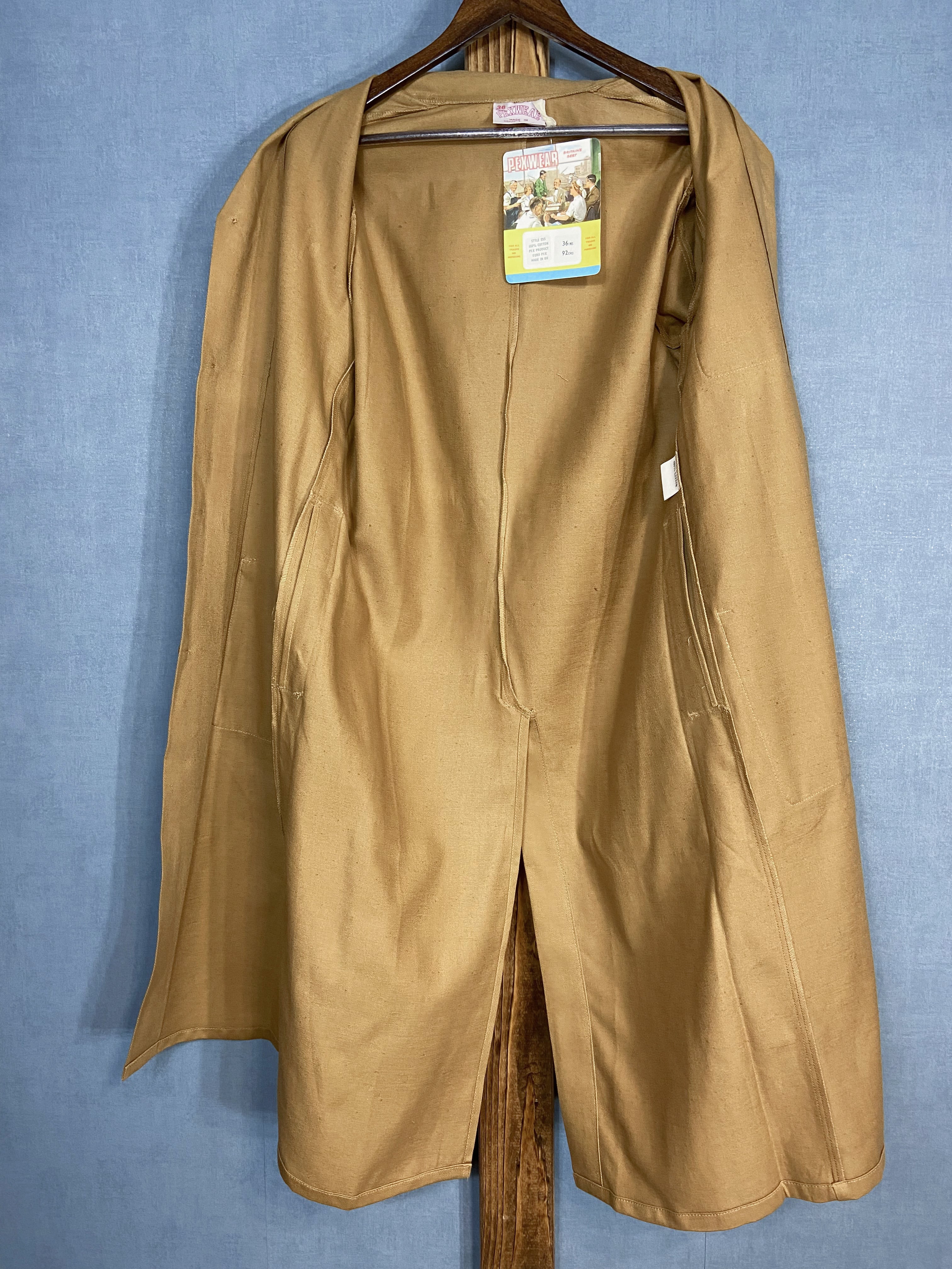 【1960s】"PEXWEAR" British Work Cotton Drill Khaki Duster Coat, Deadstock!!