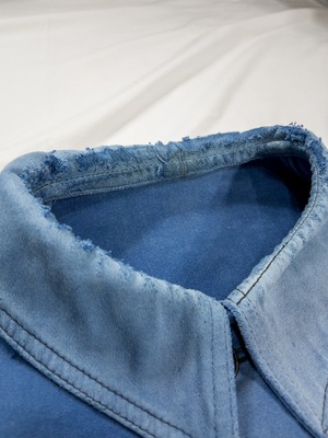 程よくフェードした個体で、丸みを帯びた襟が特徴のワークジャケット。