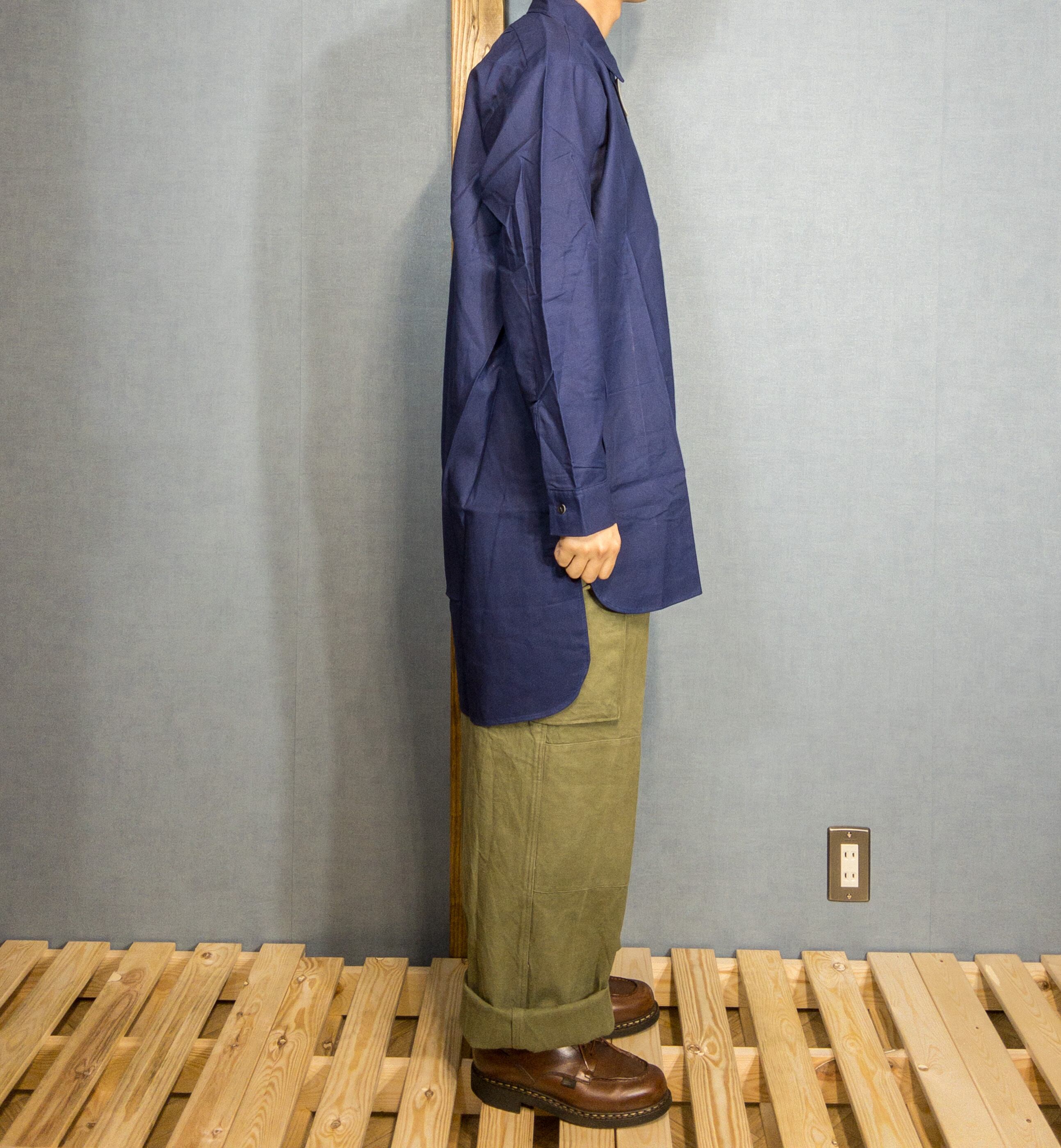 フランスらしい深いブルーのグランパシャツで、状態は抜群の紙タグ付きデッドストック。