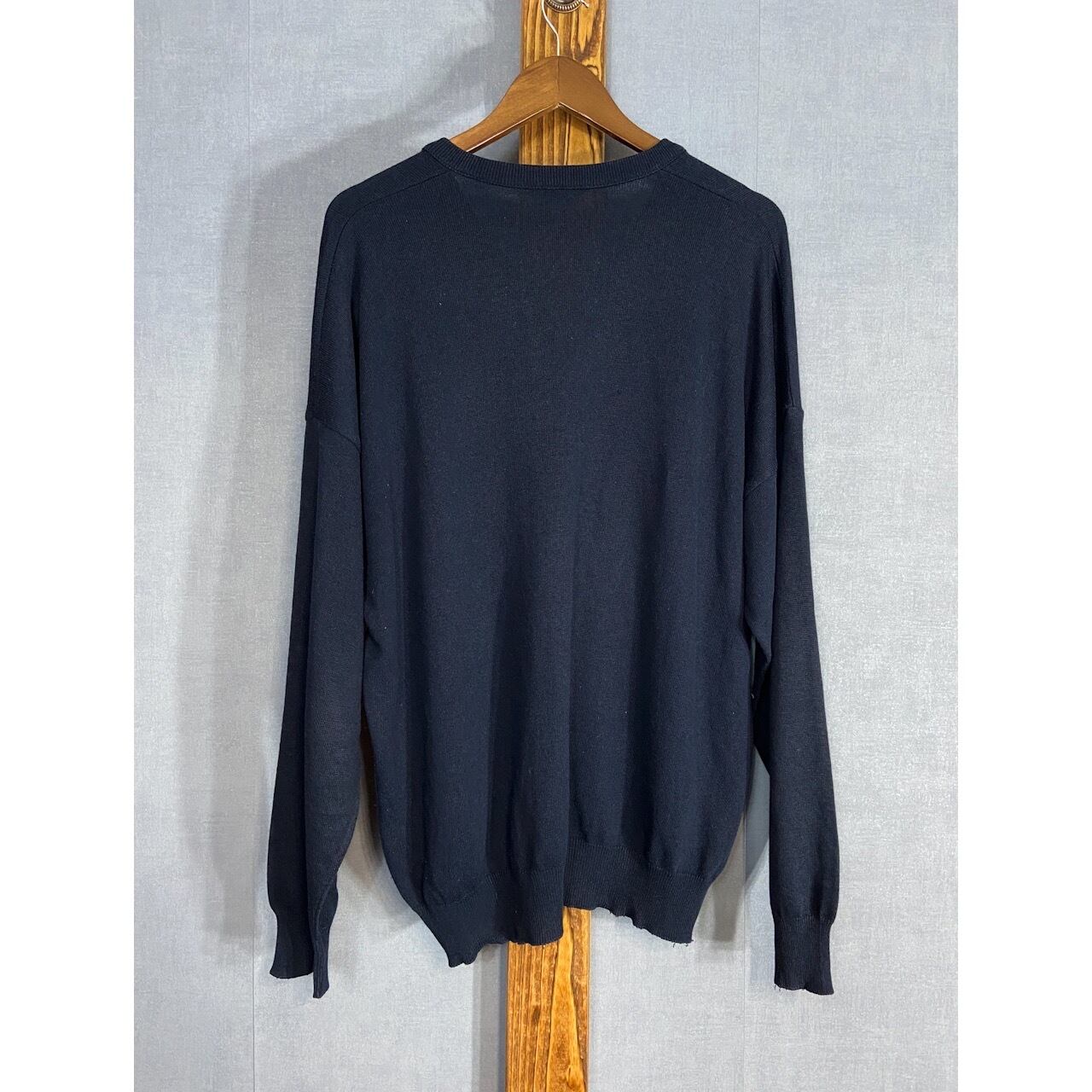 【1970-80s】French “LACOSTE” V-Neck Navy Sweater, Size 8
