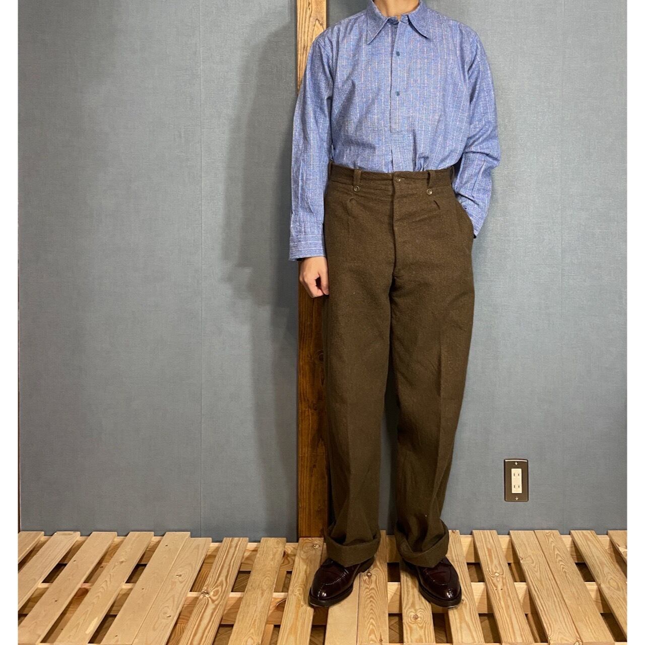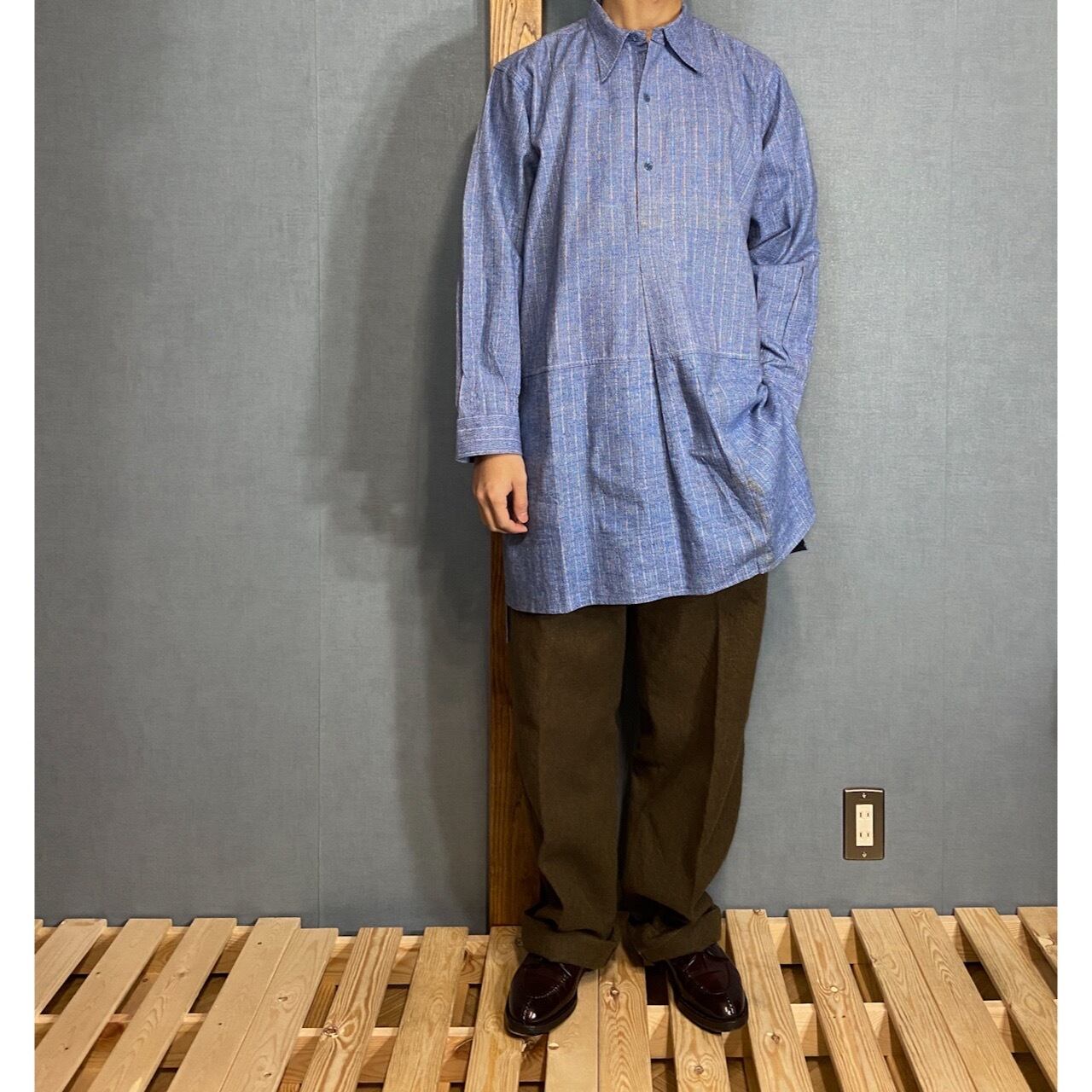 こちら1940-50年代頃のフランス製ブルーグランパシャツになります。
