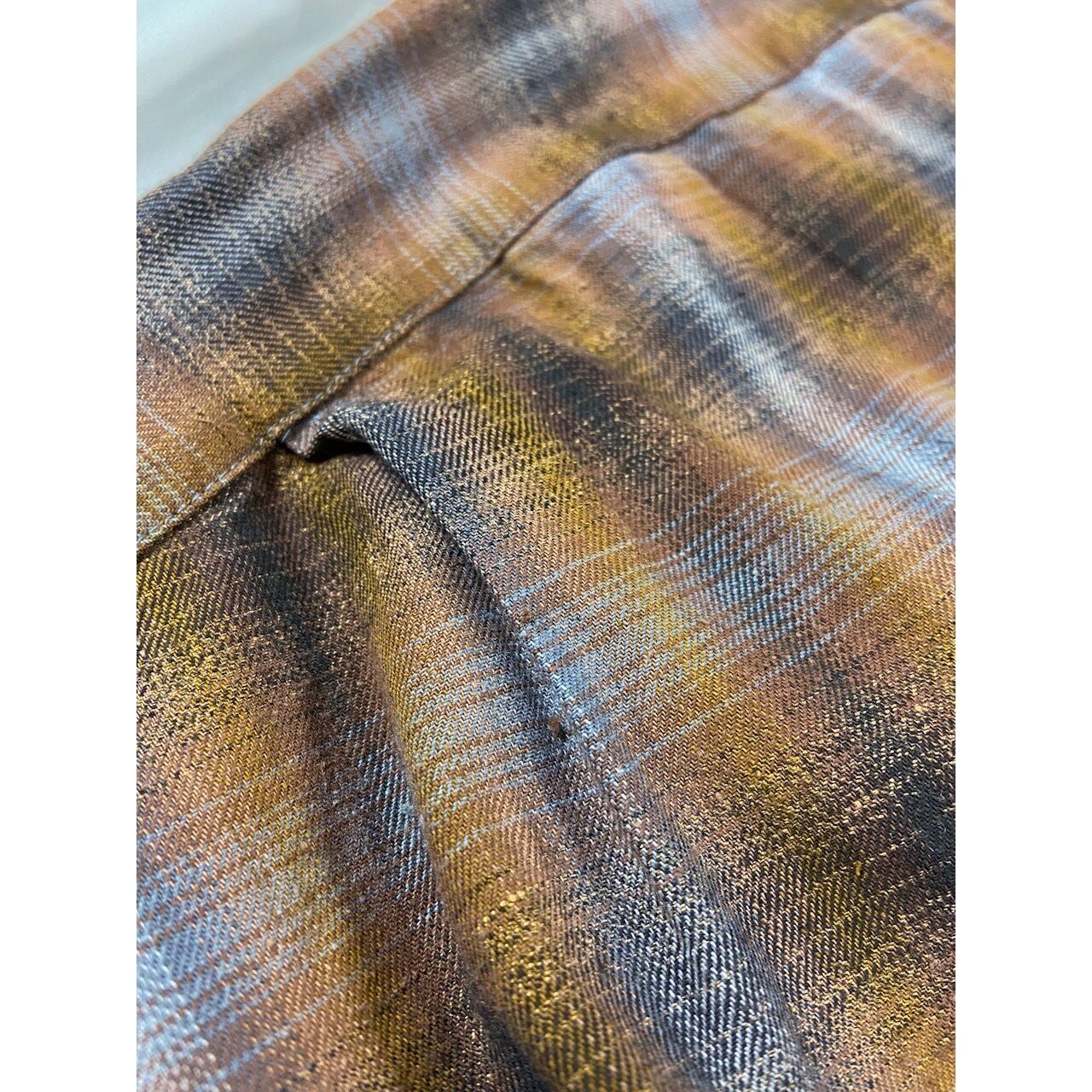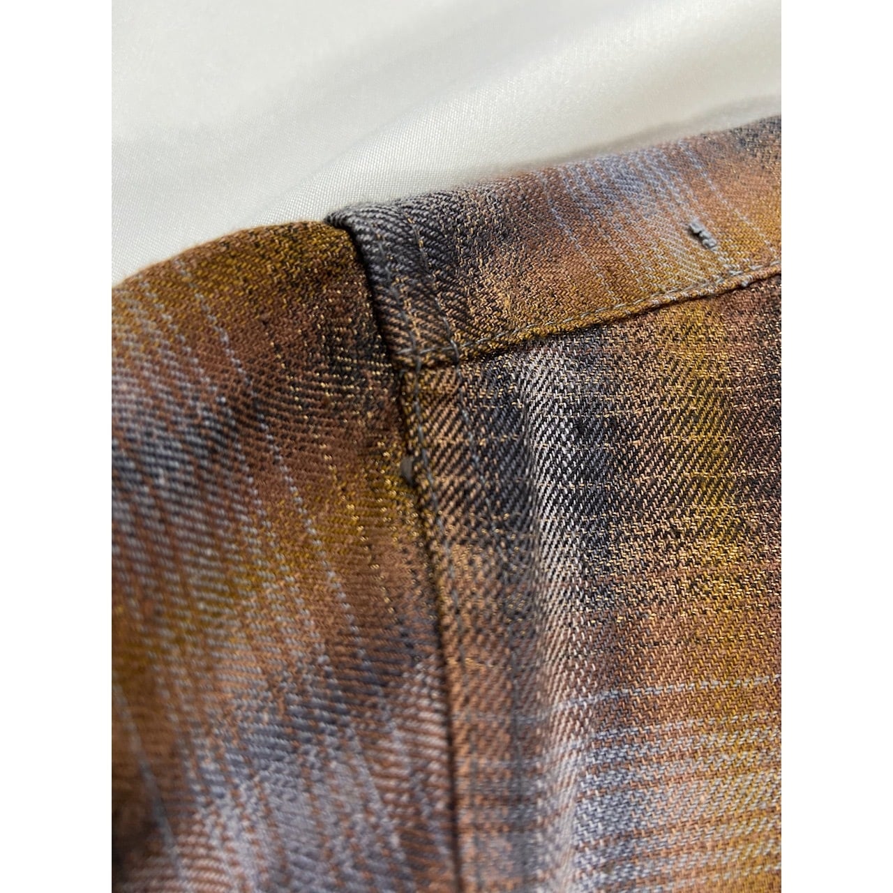 ブラウンベースにイエロー、ブラック、ホワイトブルーのシャドーチェック柄で非常に雰囲気の良いシャツです。