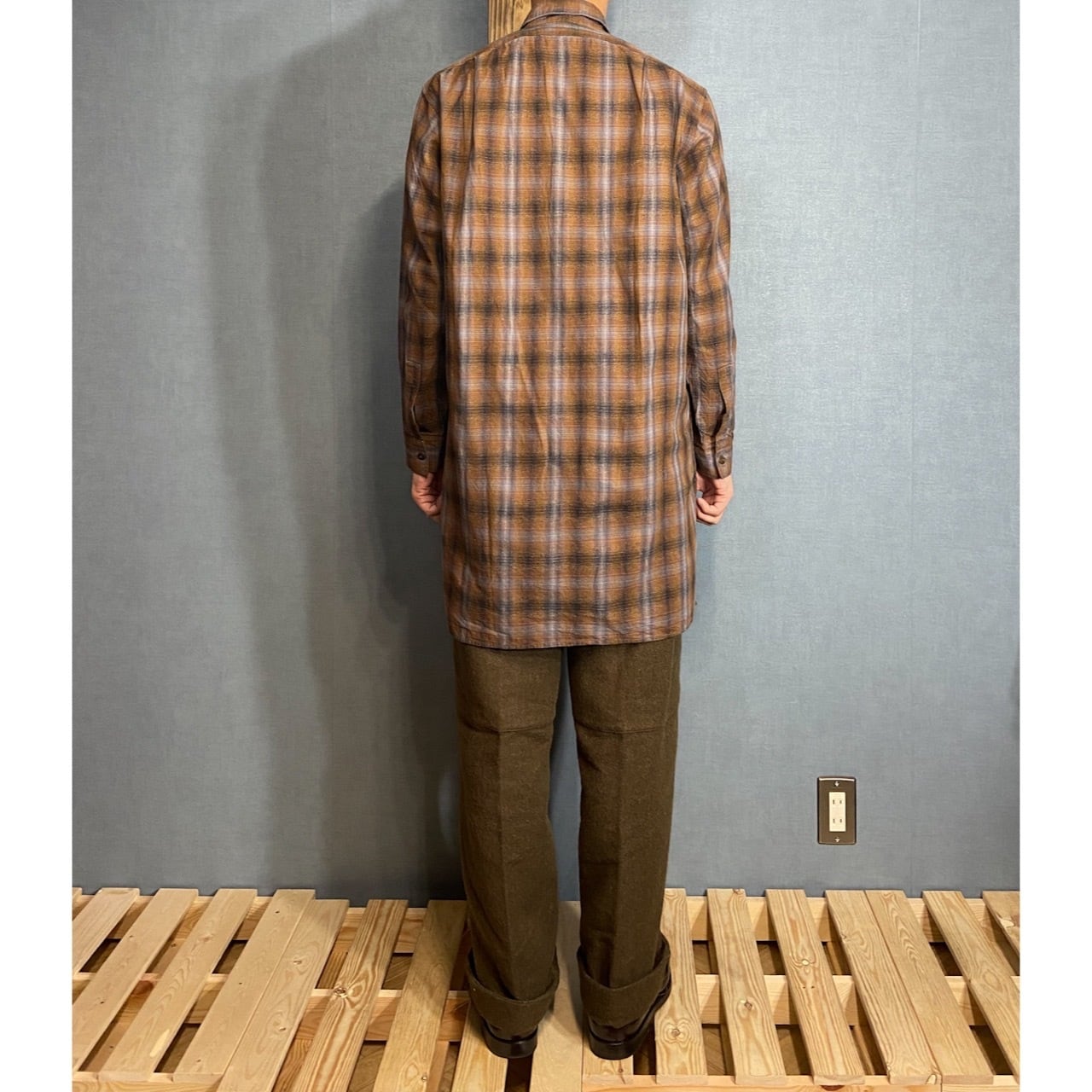 【1950-60s】"French Work" Brown Shadow Check Grandpa/Pullover Shirt