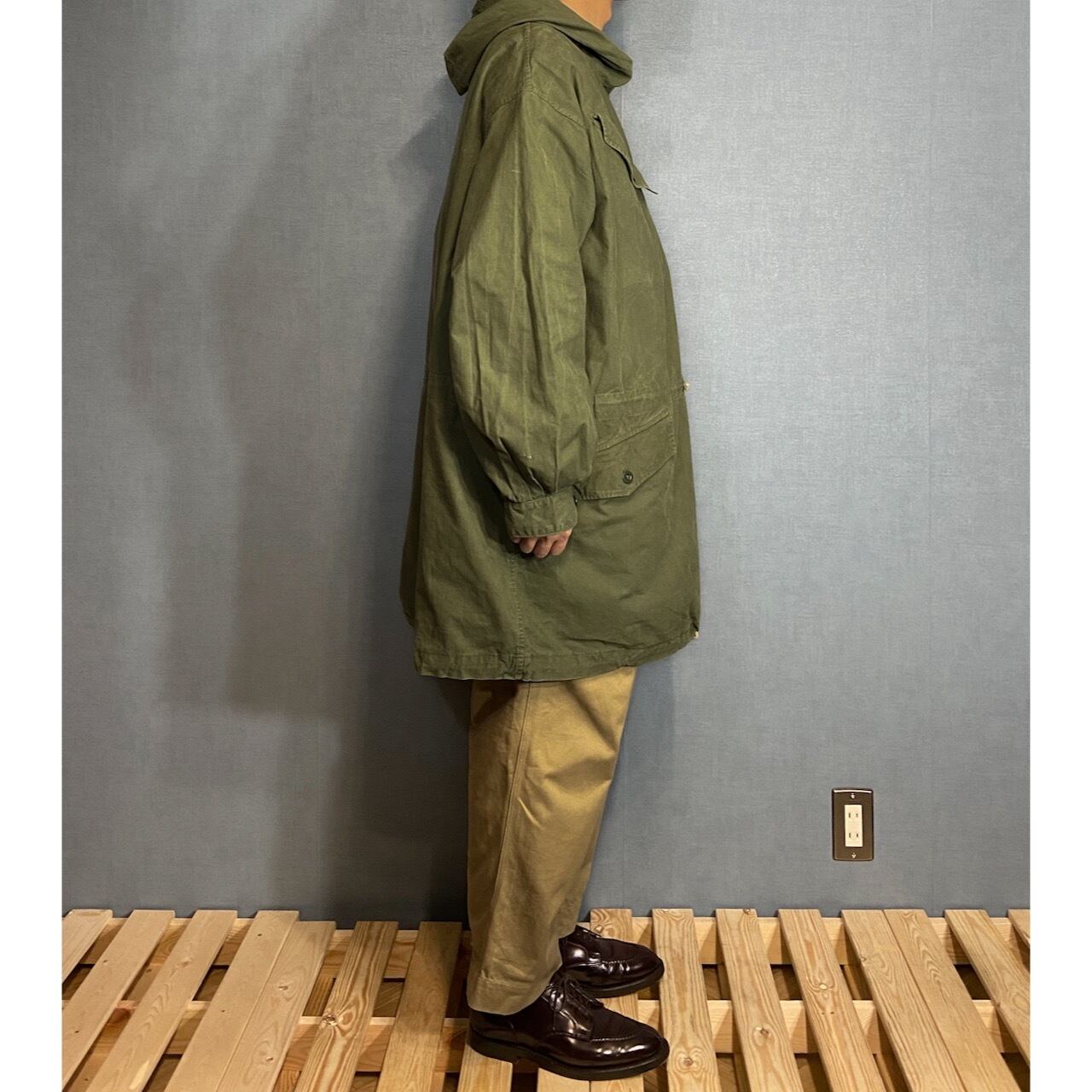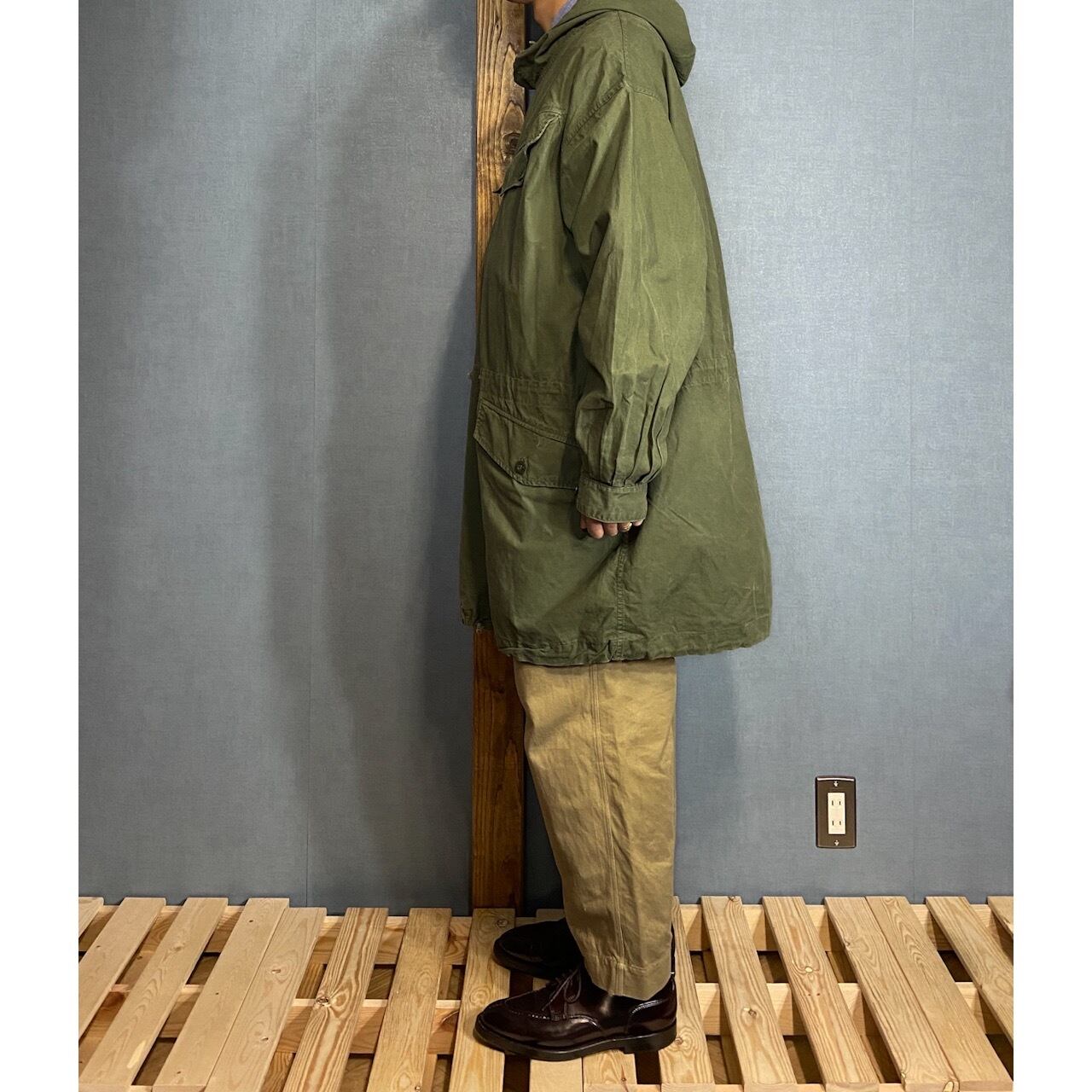 シルエットもたっぷりとしたボリューム感のある雰囲気が素晴らしく、この季節にはスウェットやニット等とのレイヤードもお楽しみいただけるかと。生地はアタリのついた良い雰囲気に仕上がっており、デッドストックにはない魅力が詰まっています。