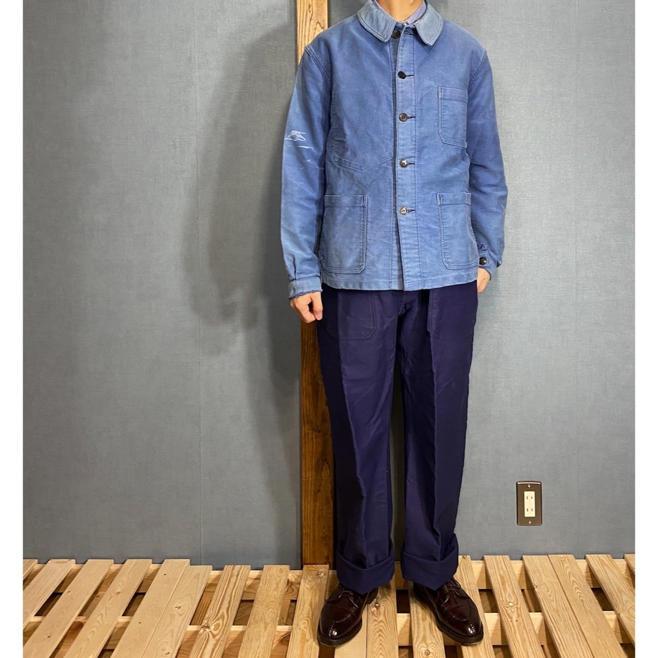 【1960s,DS】"Adolphe Lafont" Blue Moleskin Overall with "八の字ZIP", Deadstock!!