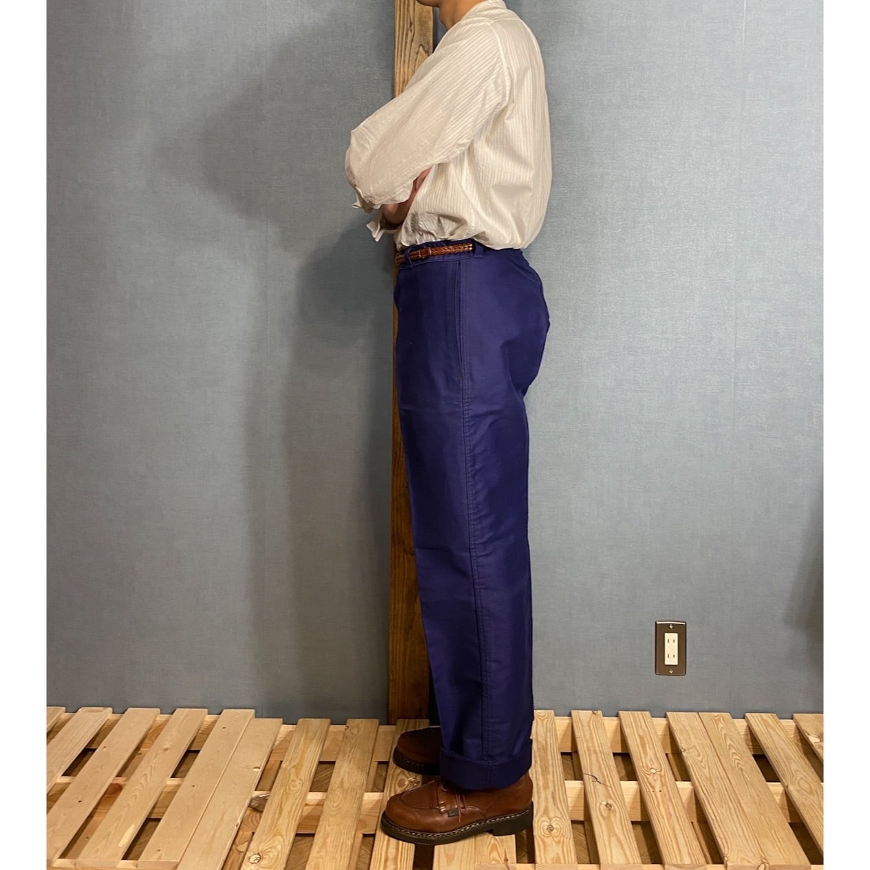 こちら1960年代頃のBARBE BLEUE製のブルーモールスキンワークトラウザーズになります。