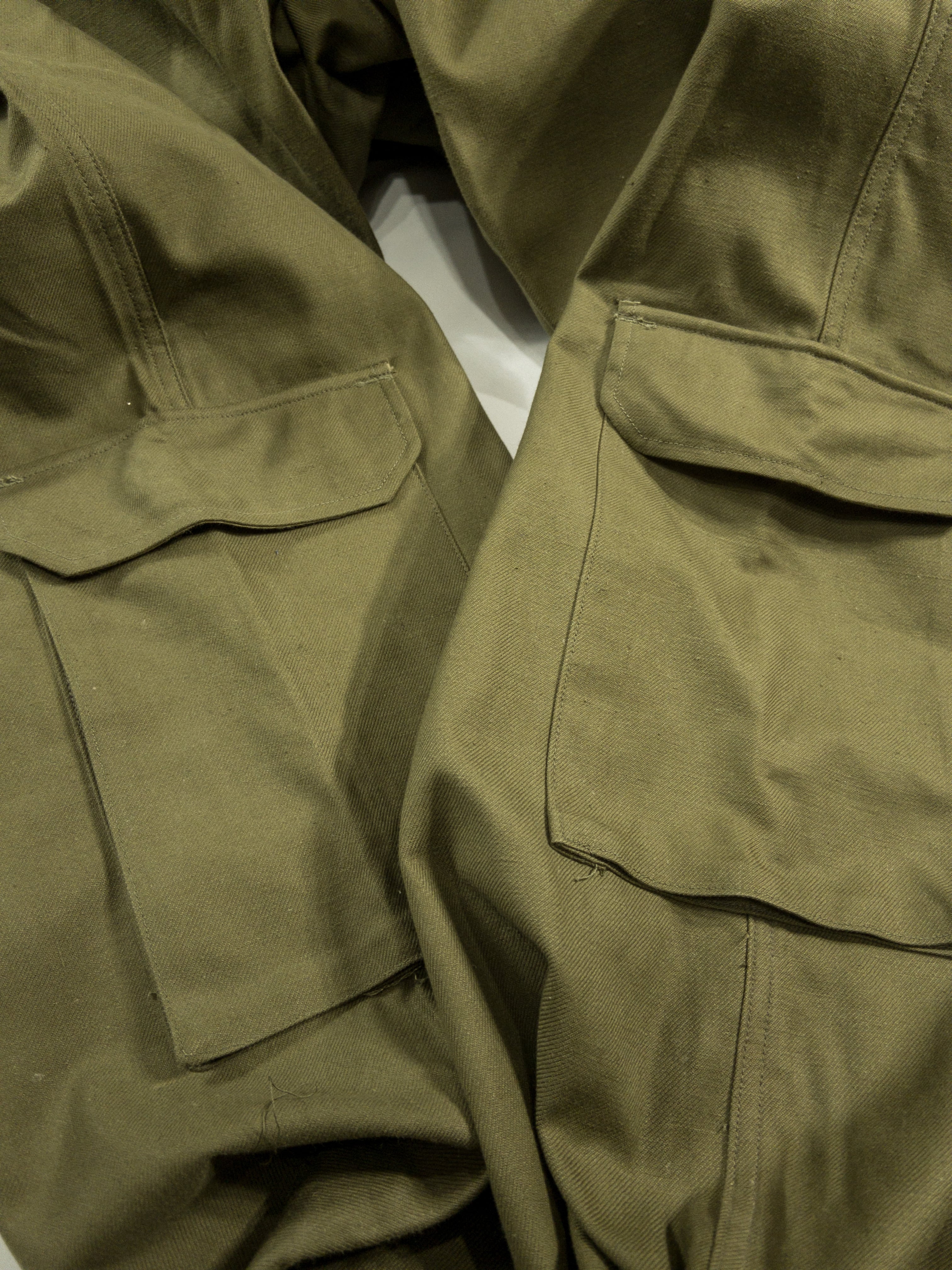 フランス軍のM-47前期型と同様のコットンツイル生地を使用しており、M-47カーゴトラウザーズのジャンプスーツ版ということになります。