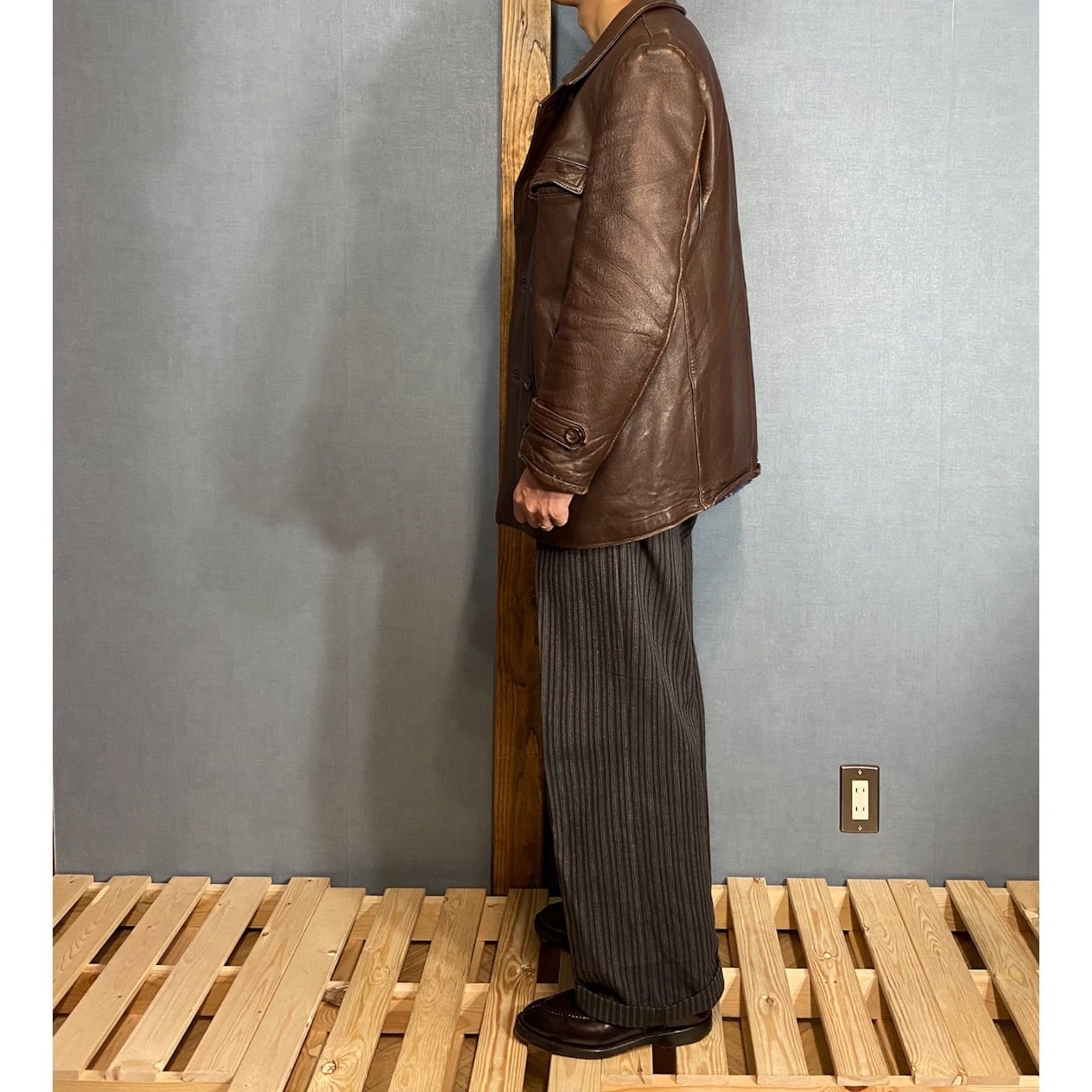 【1970s】"Le Corbusier" French Vintage GVF Leather Double Breasted Jacket