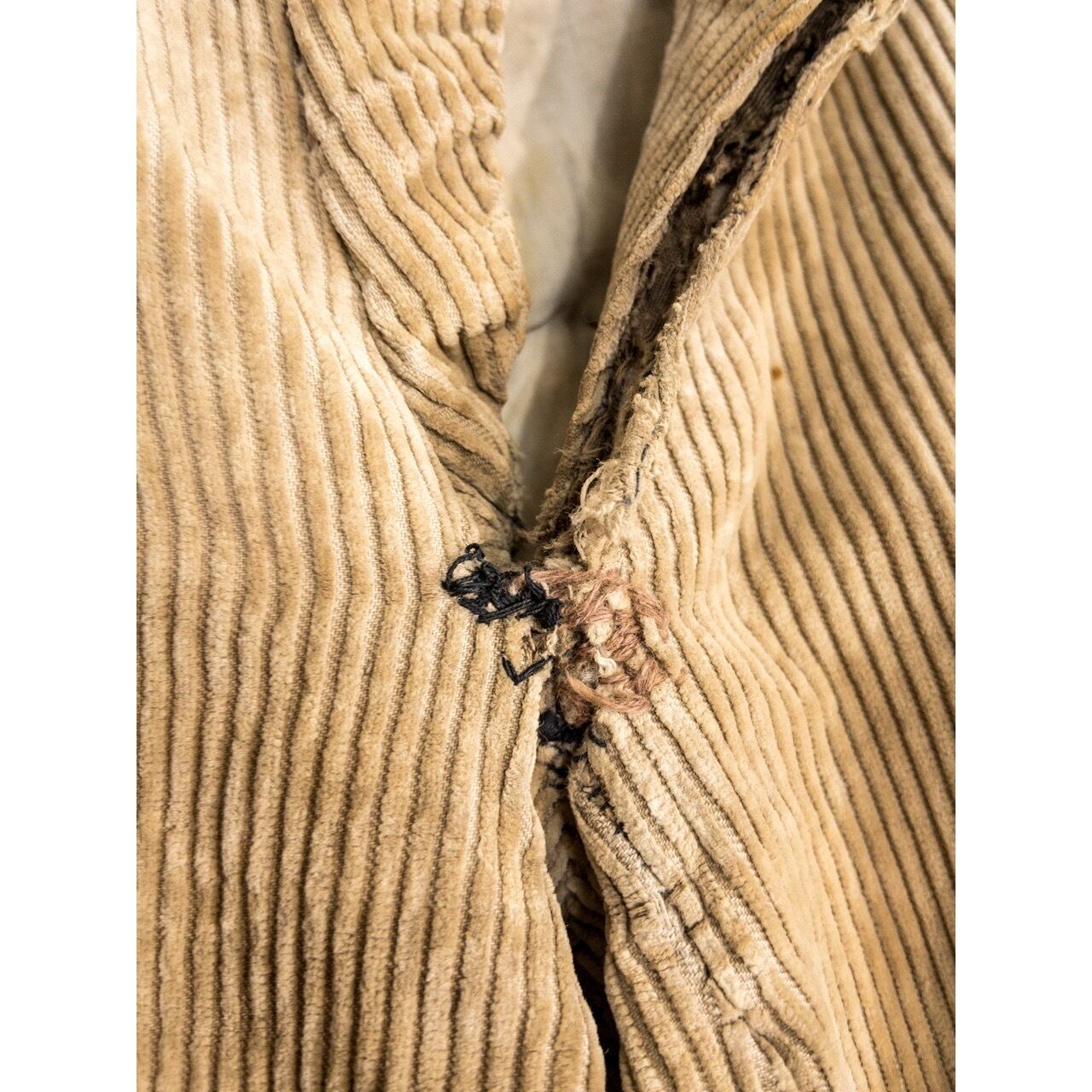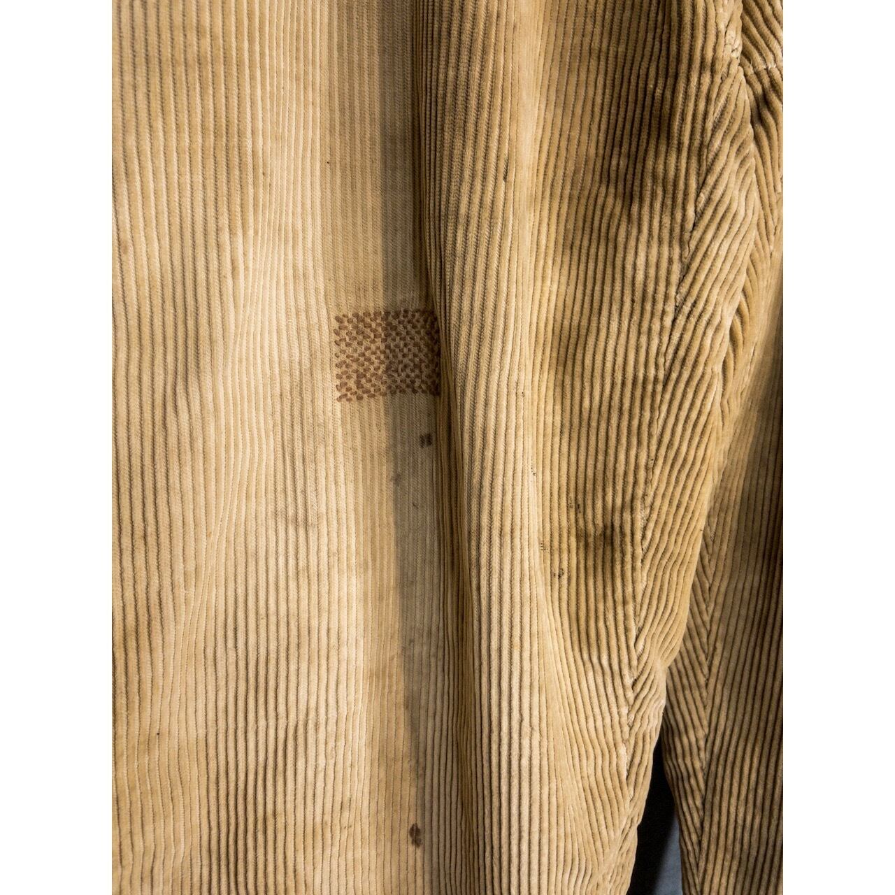 明るいベージュカラーの太畝コーデュロイだからこそ映えるリアルユースされていたダメージと、丁寧につぎはぎされたリペア跡。両膝のリペアだったり、裾のパッチワークだったり、本当に素晴らしいアイテムです。