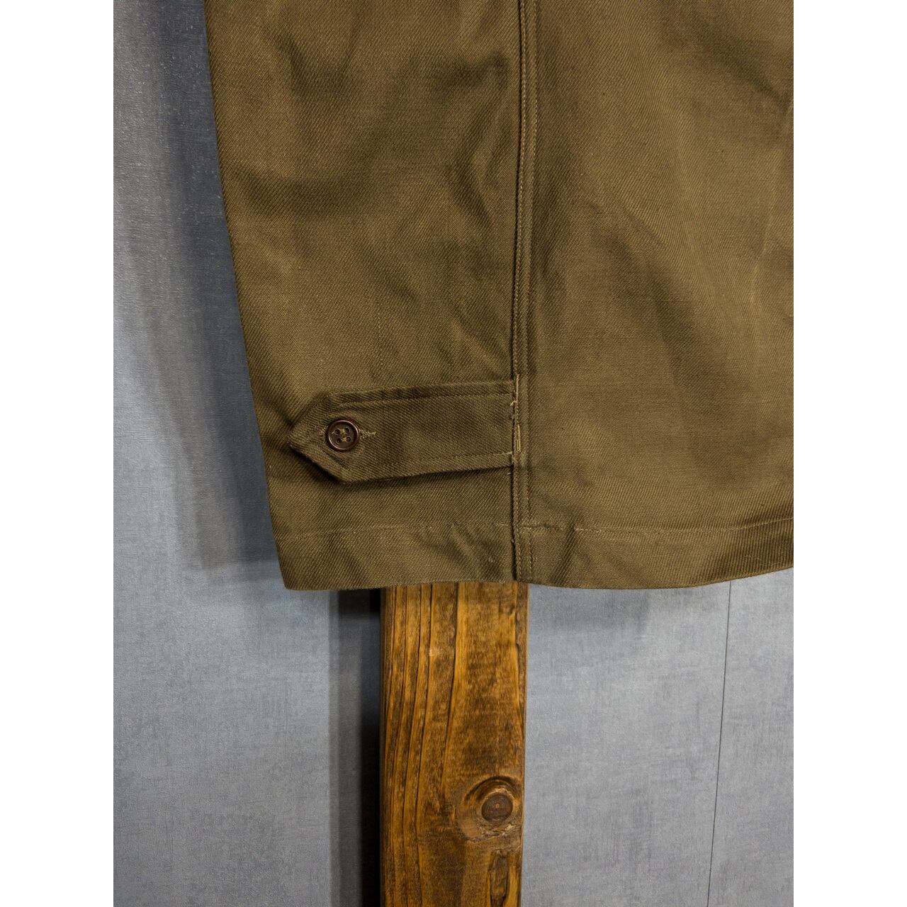 ウエスト裏の生地には通常のオリーブカラーの生地が使われているので表地のブラウンカラーと相まって唯一無二のM47パンツの様相を呈しています。