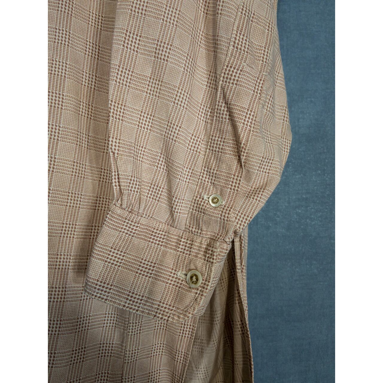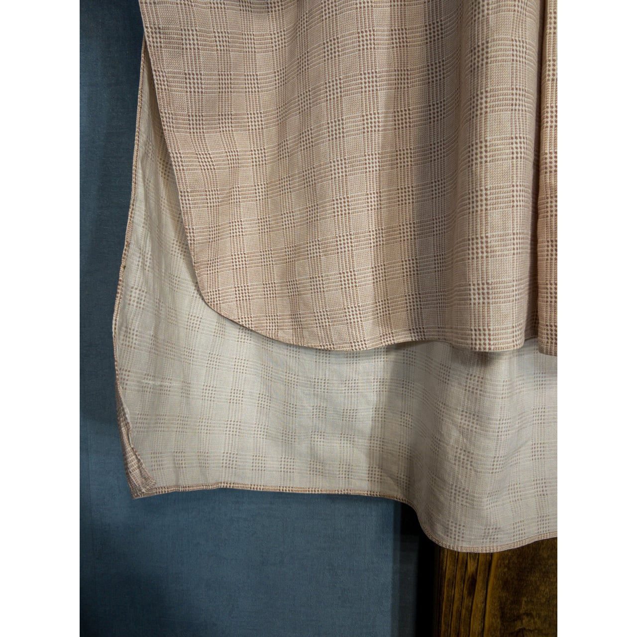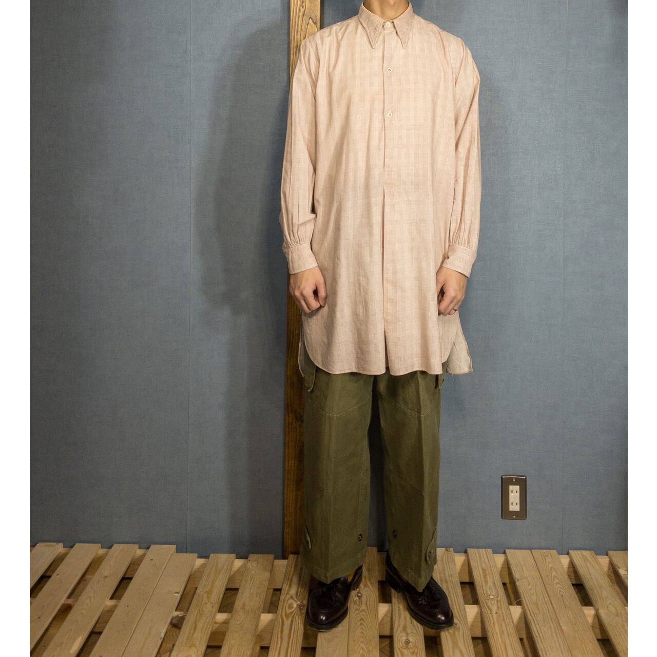 【1940s】"French Work" Ivory Check Grandpa/Pullover Shirt, Good Fabric!!