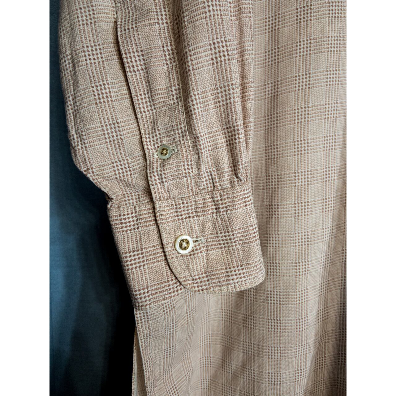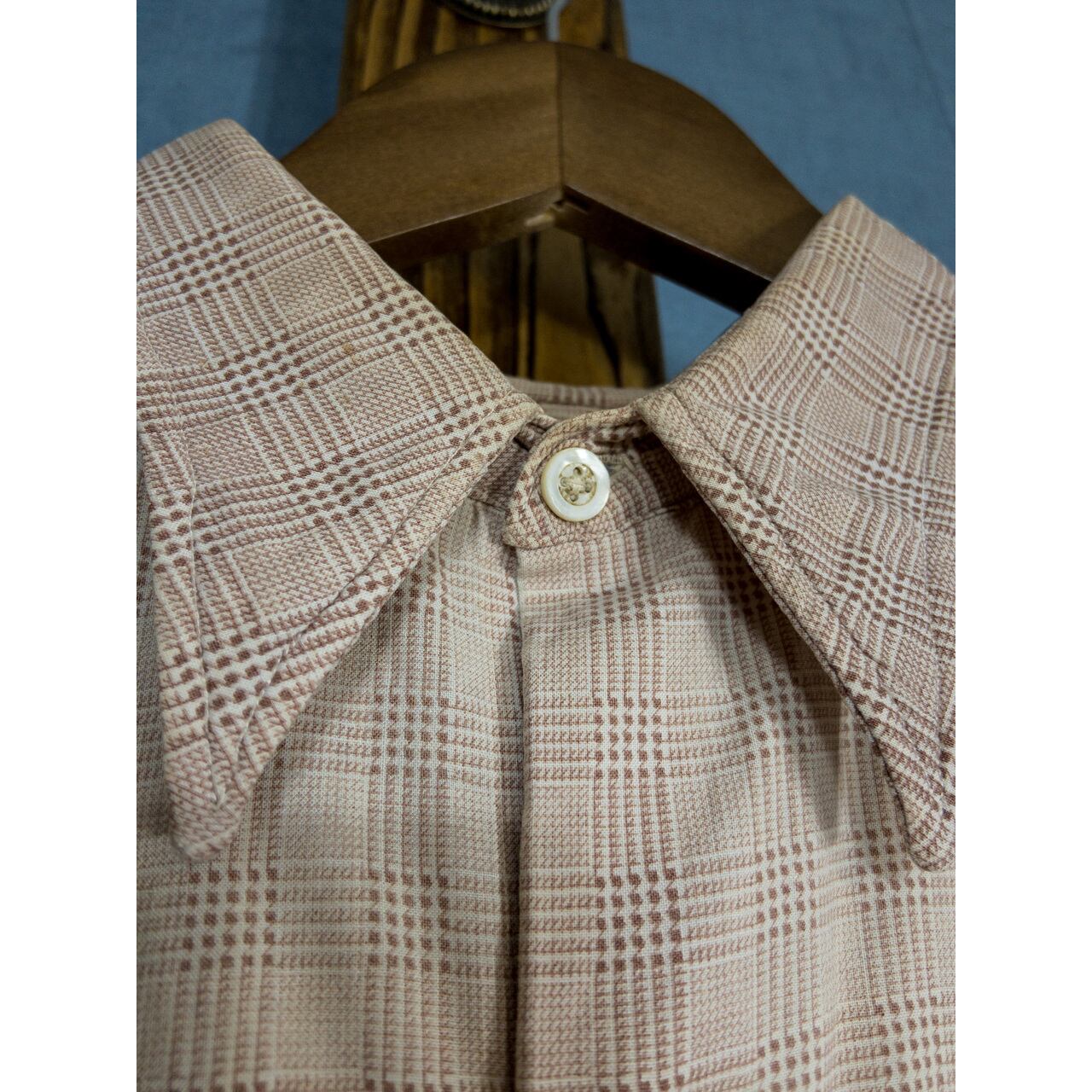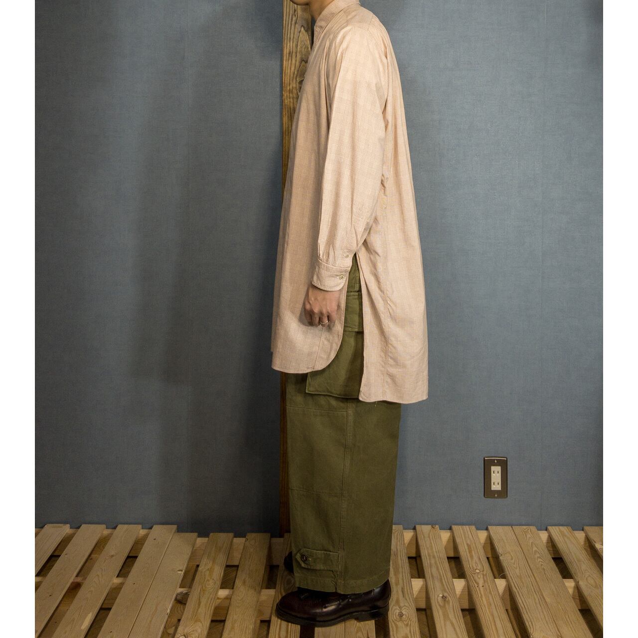 アイボリーベースにブラウンのチェックという落ち着いた色合いのグランパシャツです。