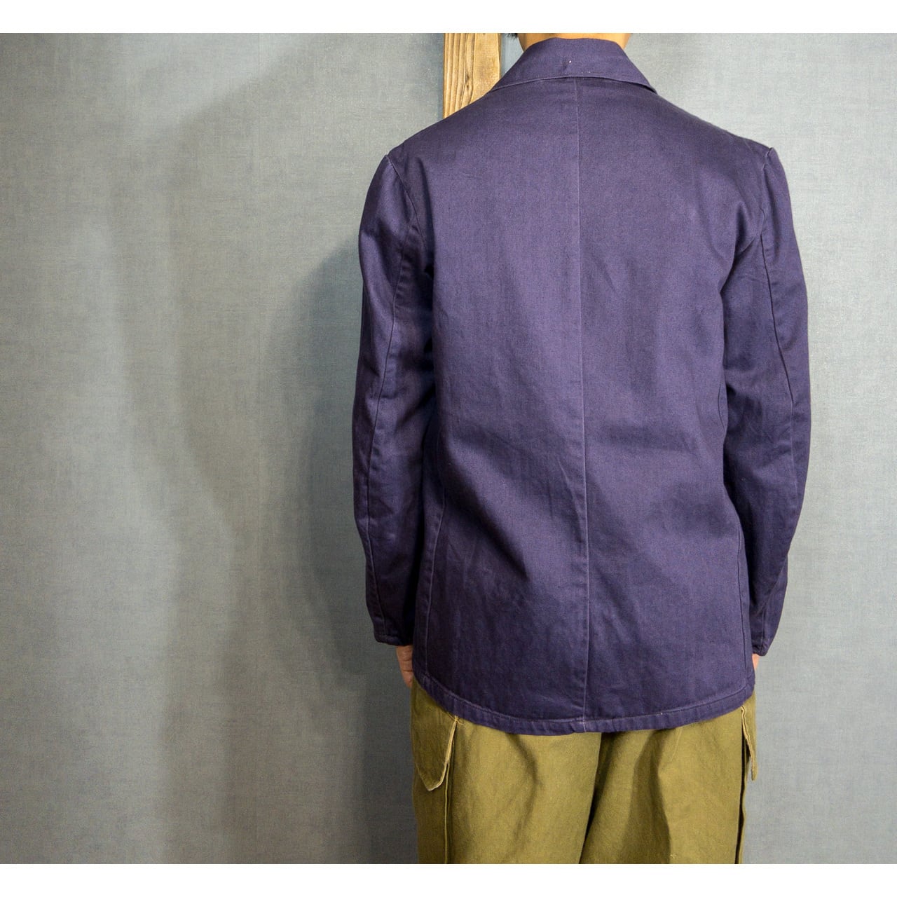 ディテールは至ってシンプルな3つボタンのジャケットですが、狭めのVゾーンから来るクラシックらしさ、やや荒々しいコットンドリル生地から来るワークらしさのバランスが絶妙でイギリスヴィンテージの中でも名品の一つと思います。