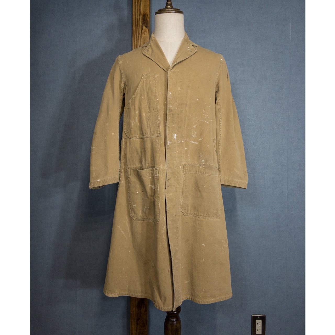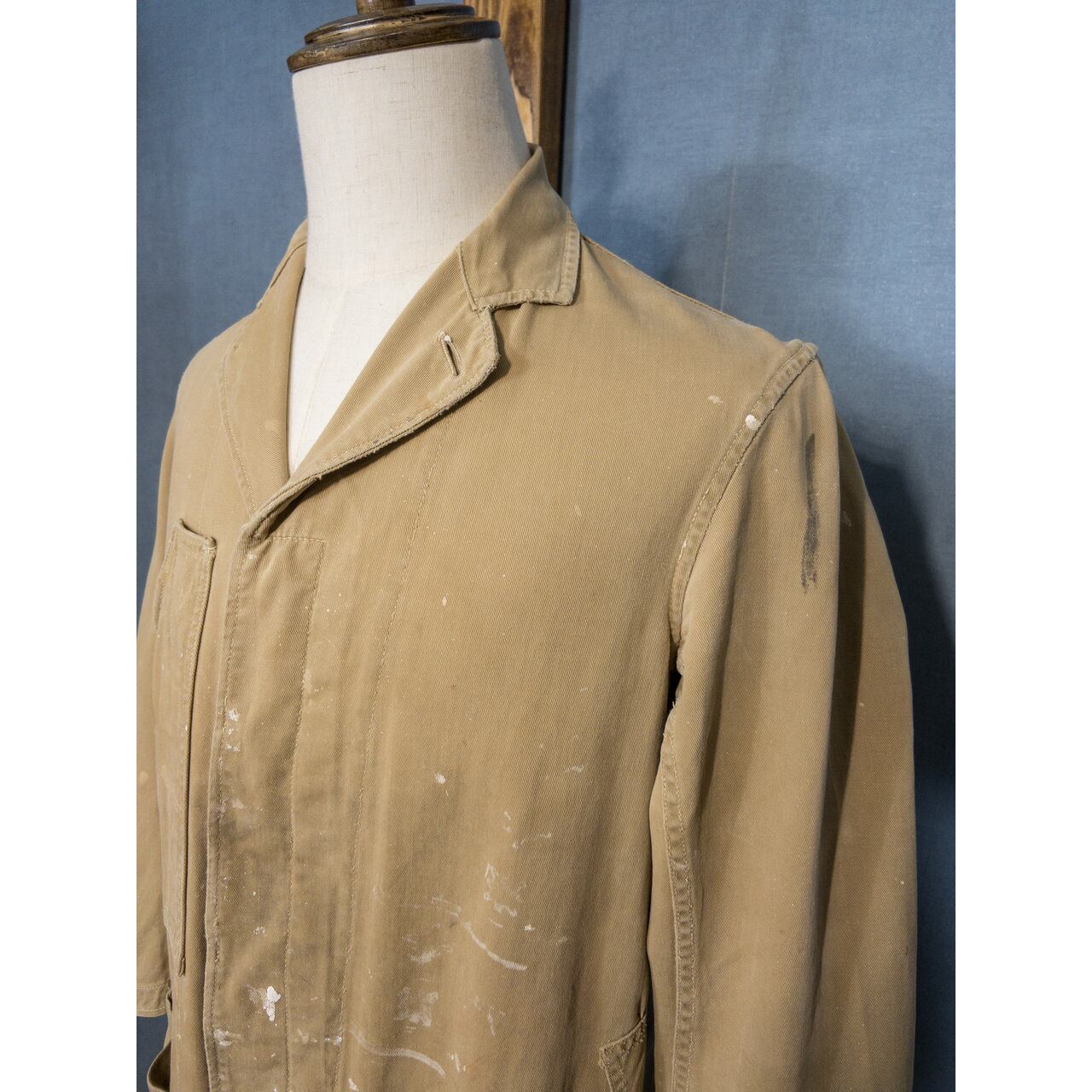 【1940-50s】"British Work" Cotton Drill Painted Work Coat with Changed Buttons