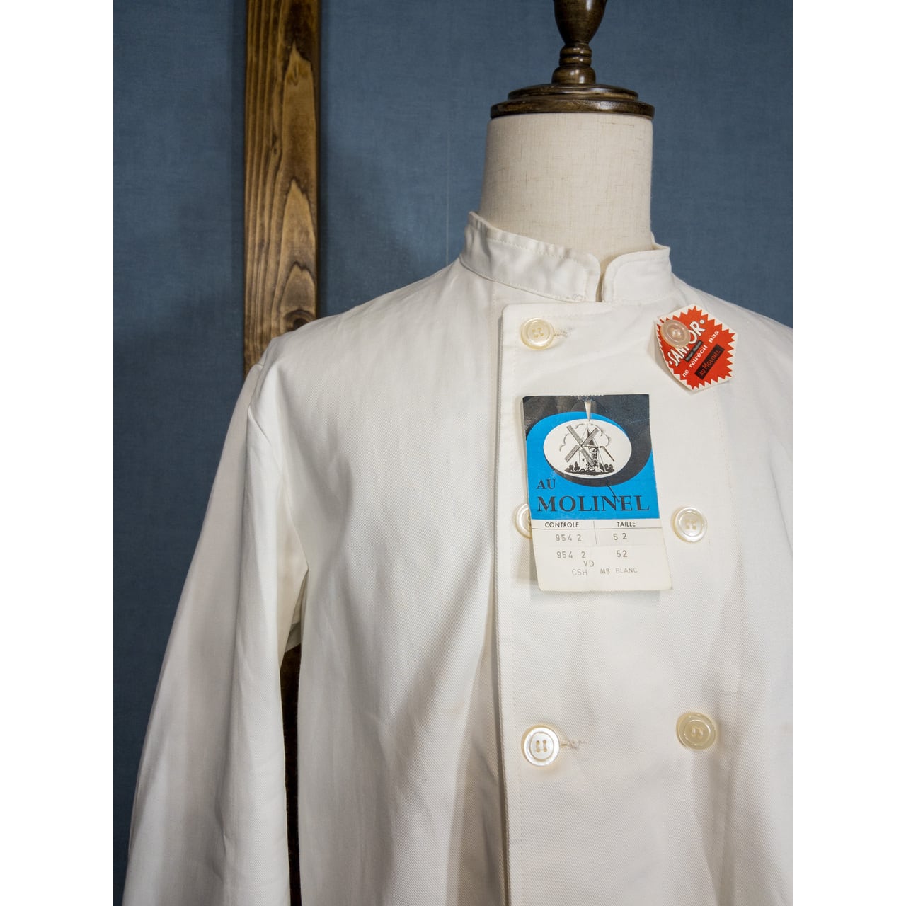 【1950s】"Au Molinel" French Work White Cook Double Breasted Jacket, Deadstock!!