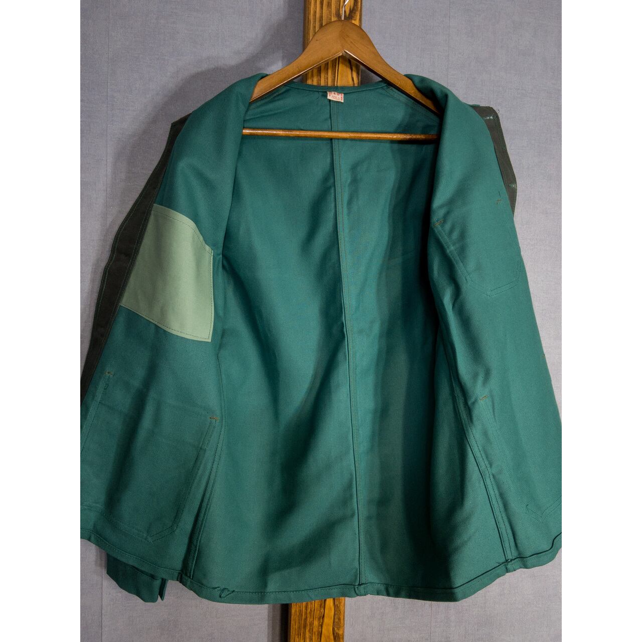 市場に多く出回っているブルーのジャケットとは異なる、珍しいグリーンカラーのワークジャケットです。