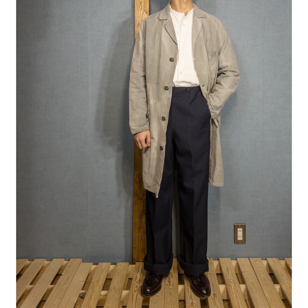 こちら1940年代頃のフランス製ブラックシャンブレーアトリエコートになります。