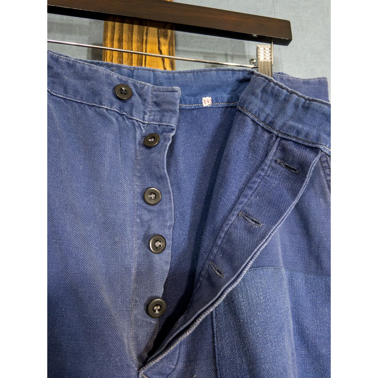 【1940-50s】"French Work" Faded Blue Cotton Twill Patch Work Trousers