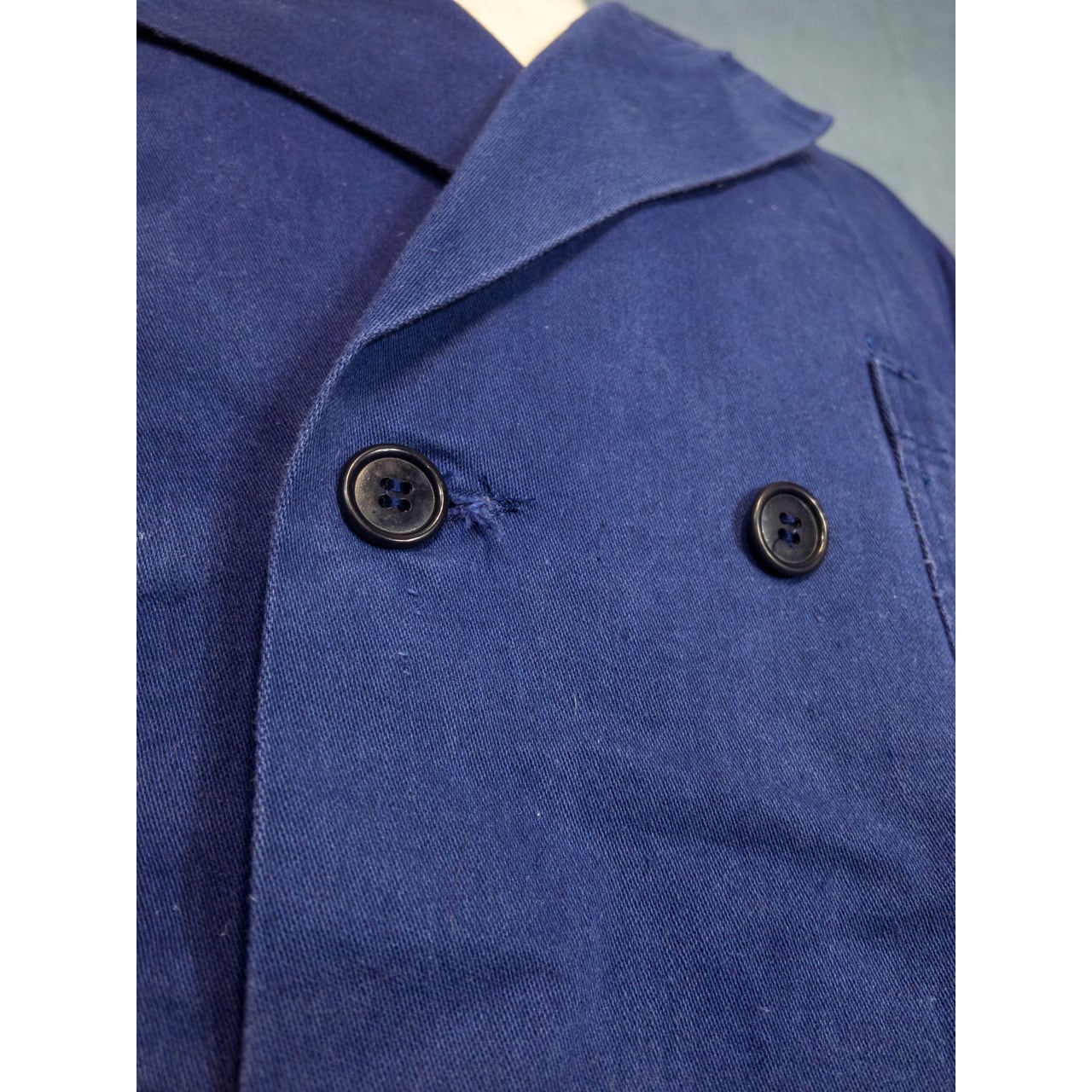 【1950-60s】"Dutch Work" Blue Cotton Twill Double Breasted Jacket