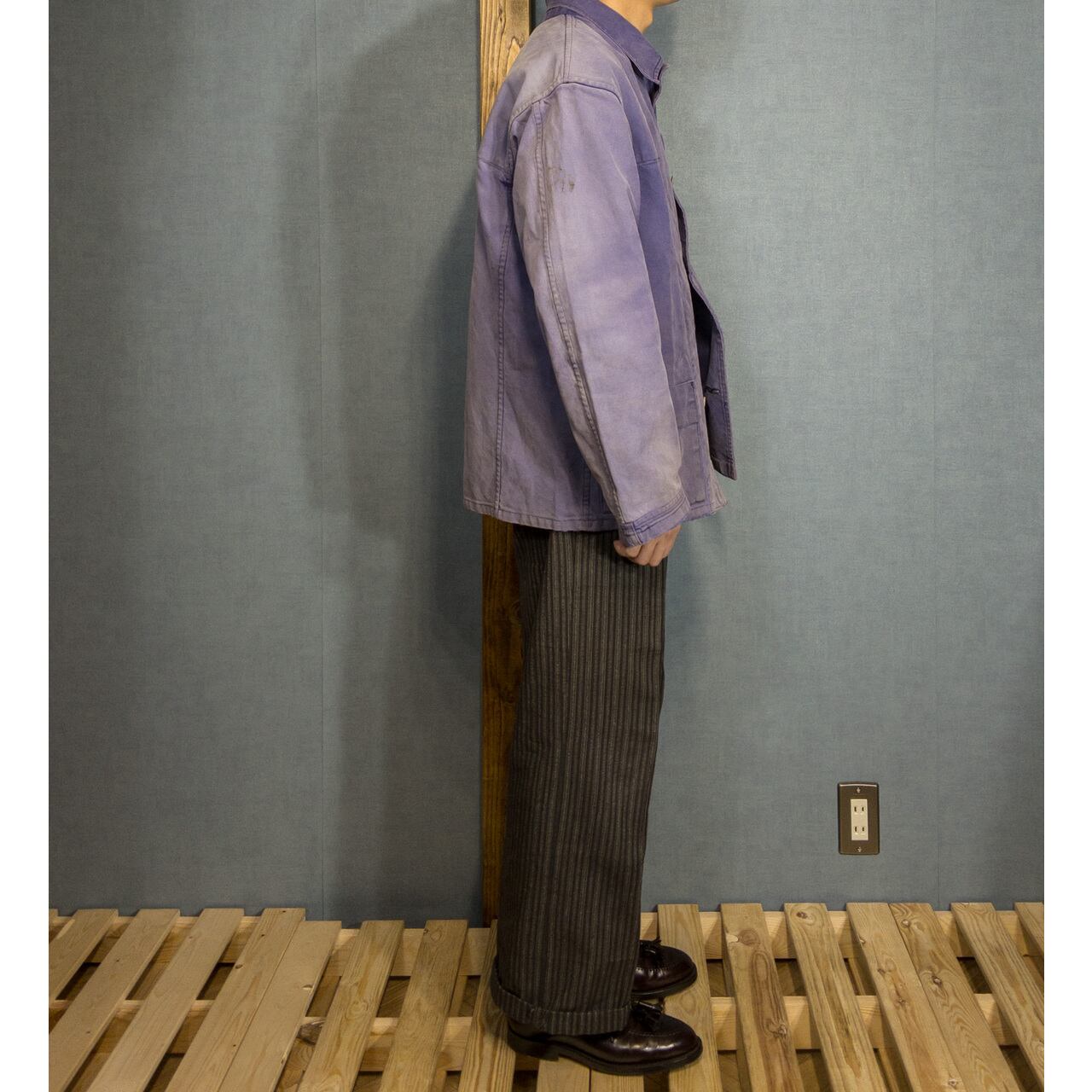 【1950s】"French Work" Faded Cotton Twill Work Jacket, Rare Pattern!!