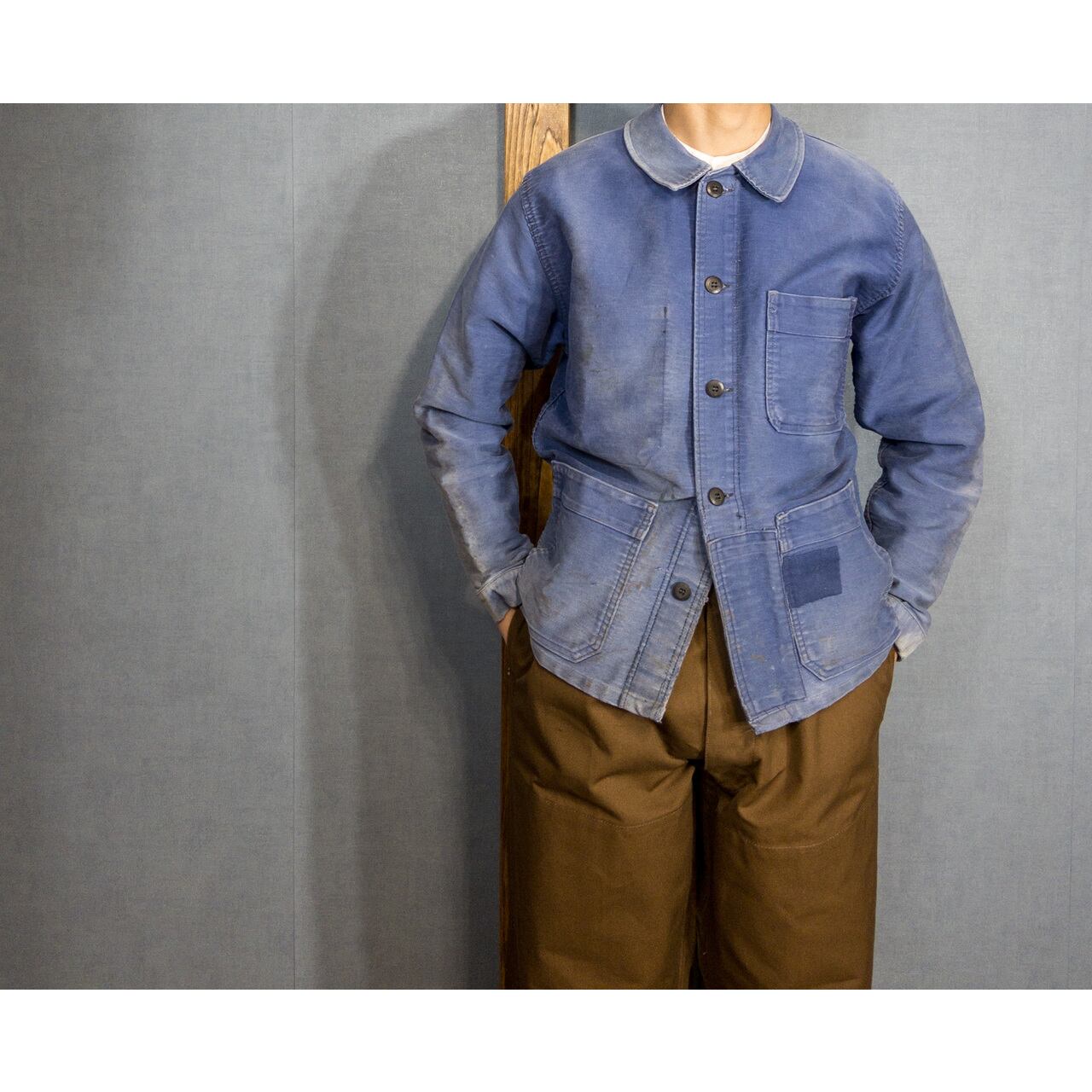 【1950s】"French Work" Faded Blue Moleskin Work Jacket ①