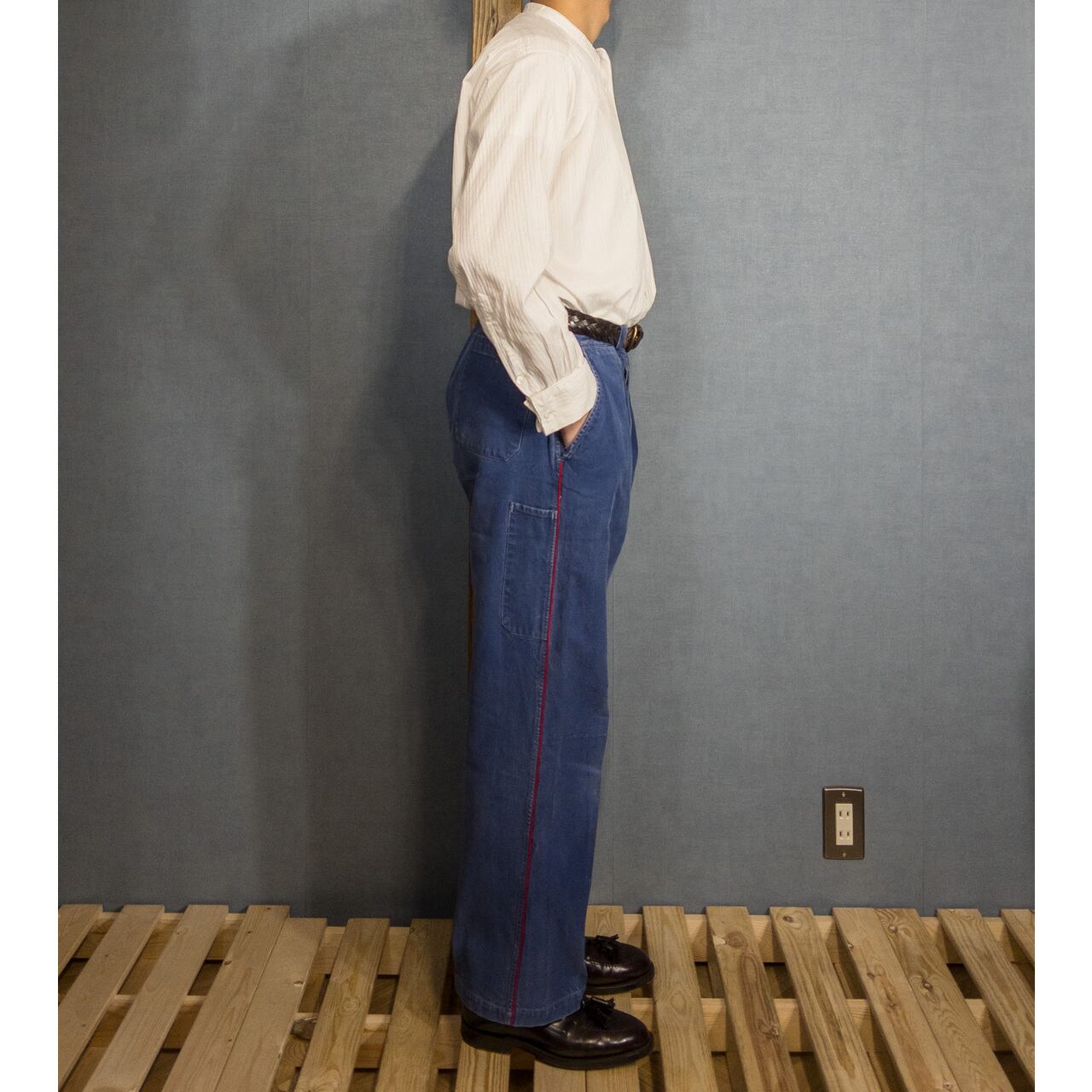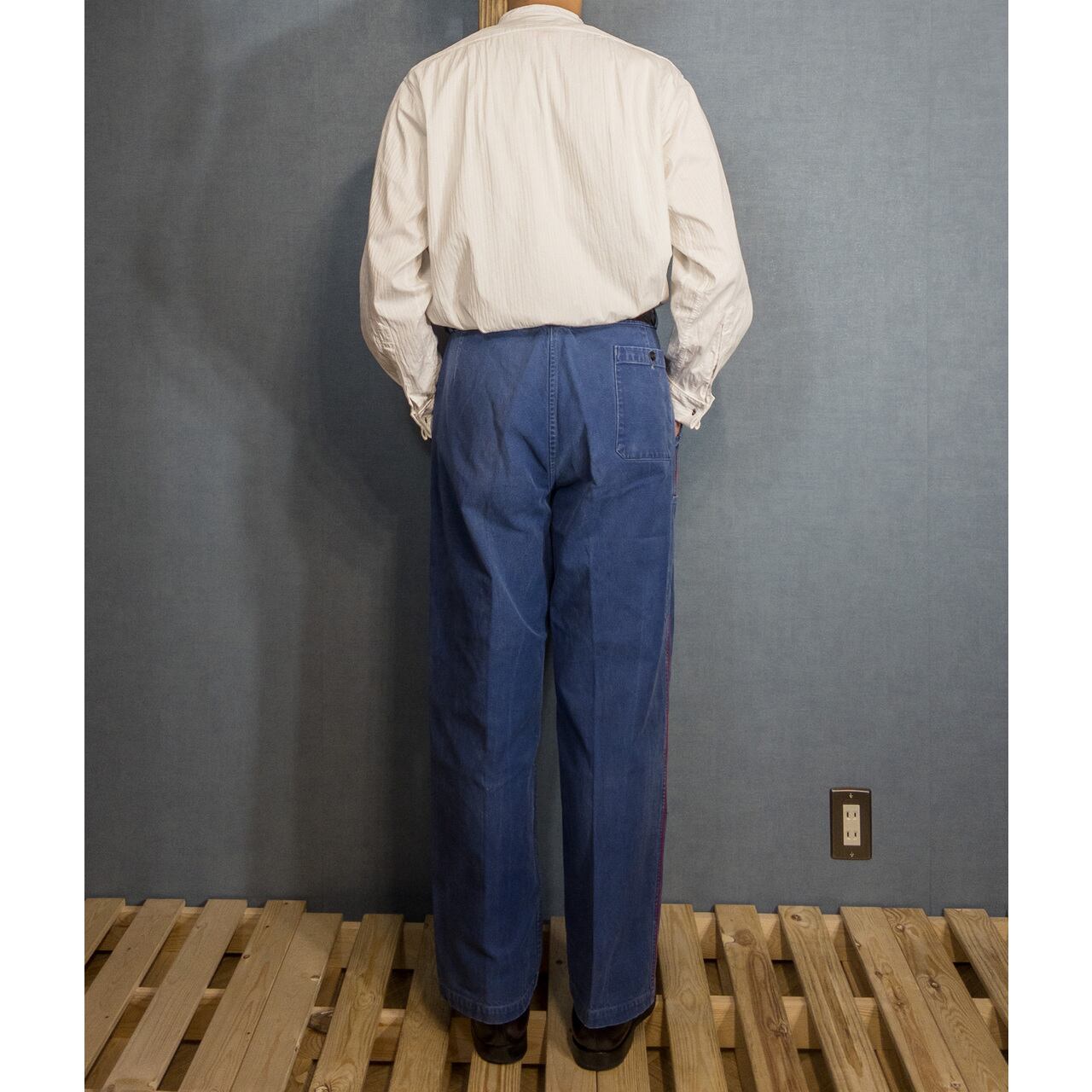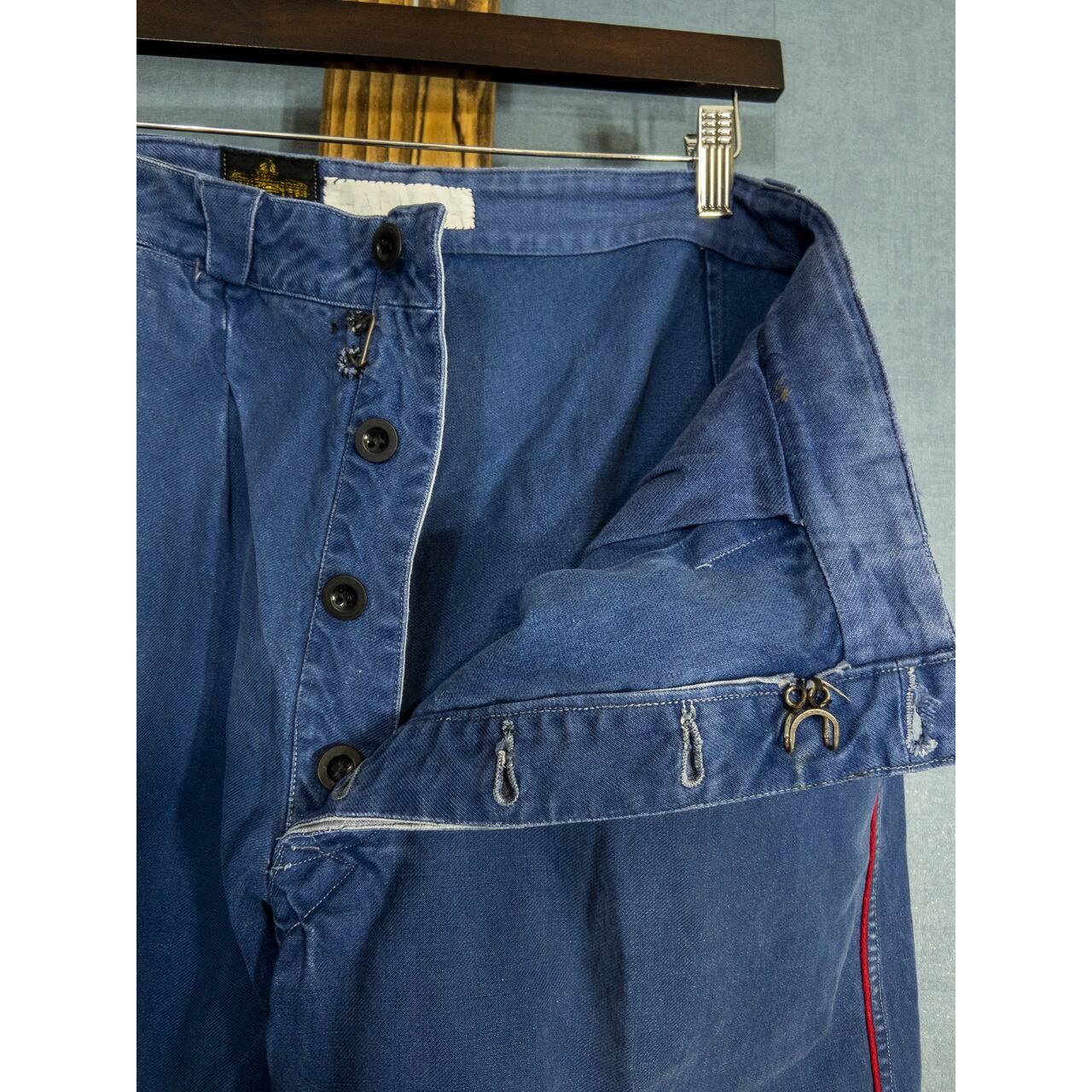 こちらは1940-50年代頃のフランス製ブルーコットンツイルファイヤーマントラウザーズになります。