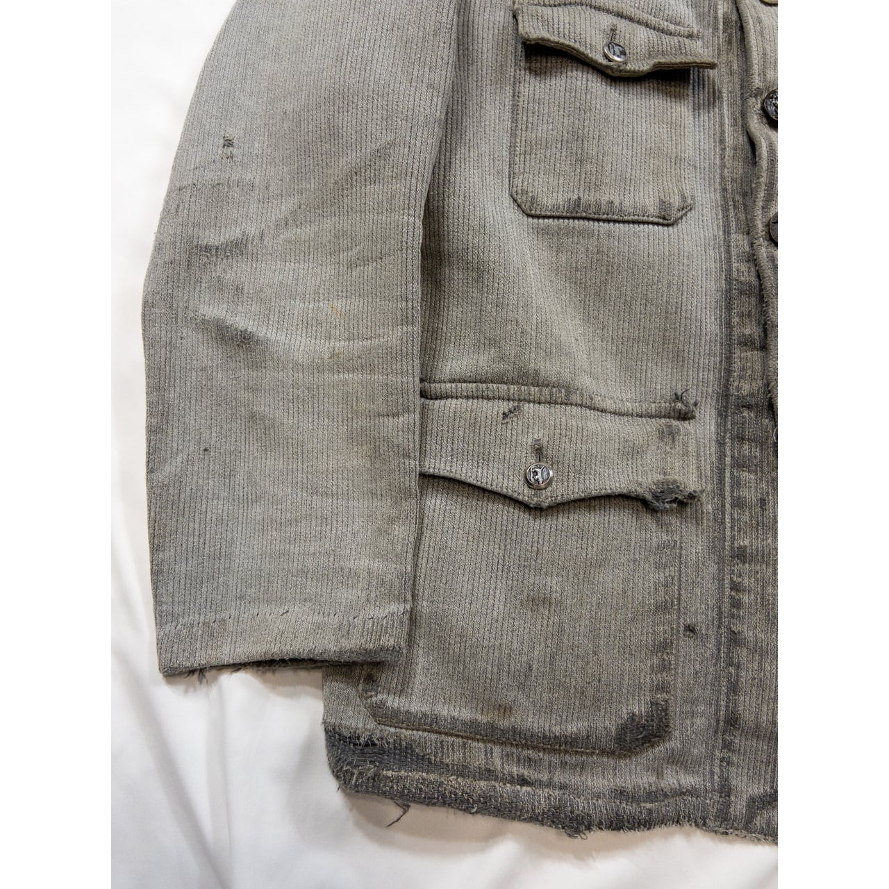 全体的に程よい襤褸感とフェードを感じることができる素晴らしい状態のジャケット。グレーの中にある黒い糸が剥き出しになっており絶妙なグラデーションが表現されています。