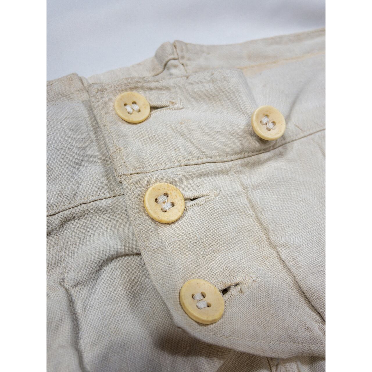 【1930s】"French Navy" White Linen Sailor Trousers with Bone Buttons, Good Condition!!