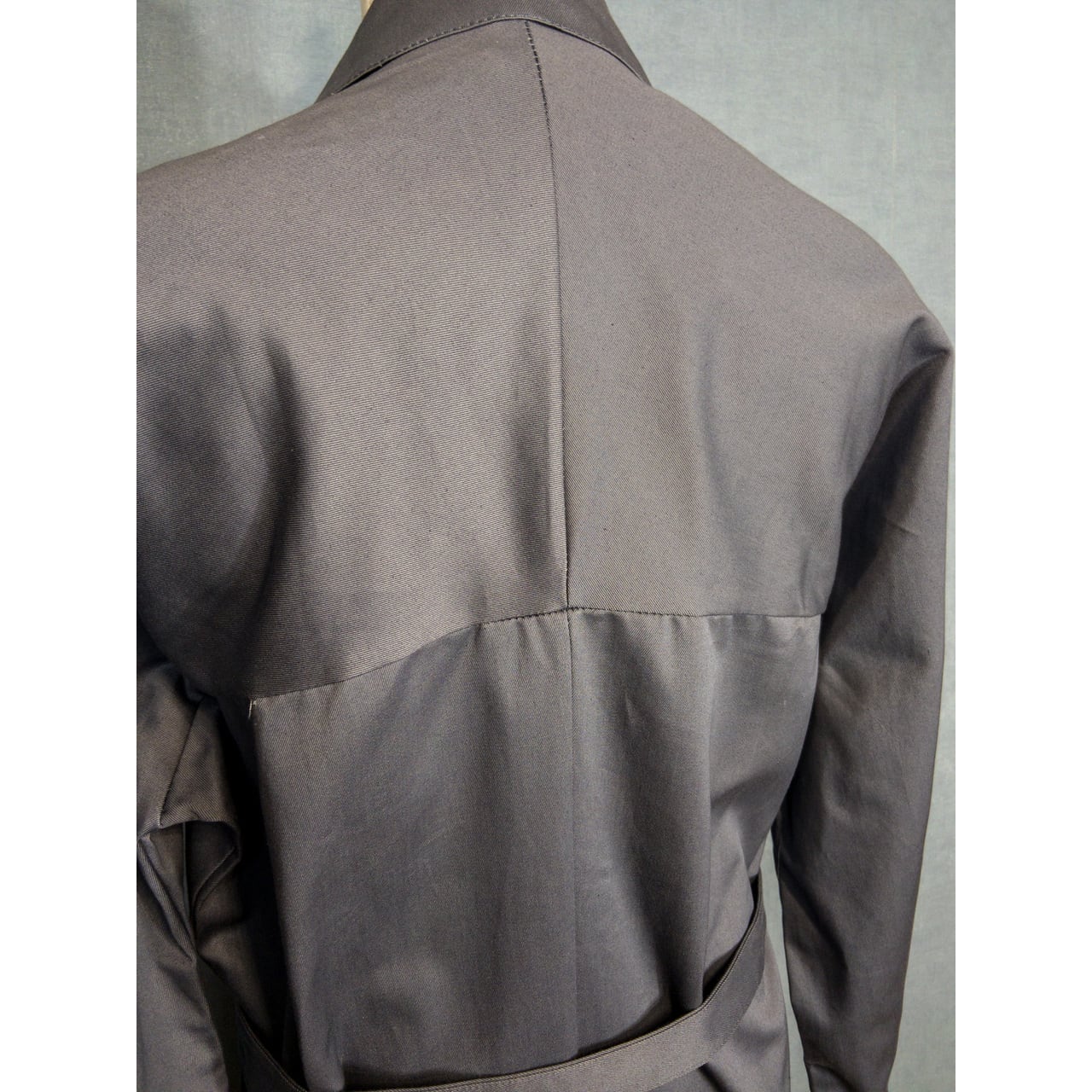 ブルーグレーのコットンツイル生地。バックの肩周りを見ていただくと分かるのですが、こちら非常に凝ったパターンで胸から袖が独特な切り返しで縫製されています。