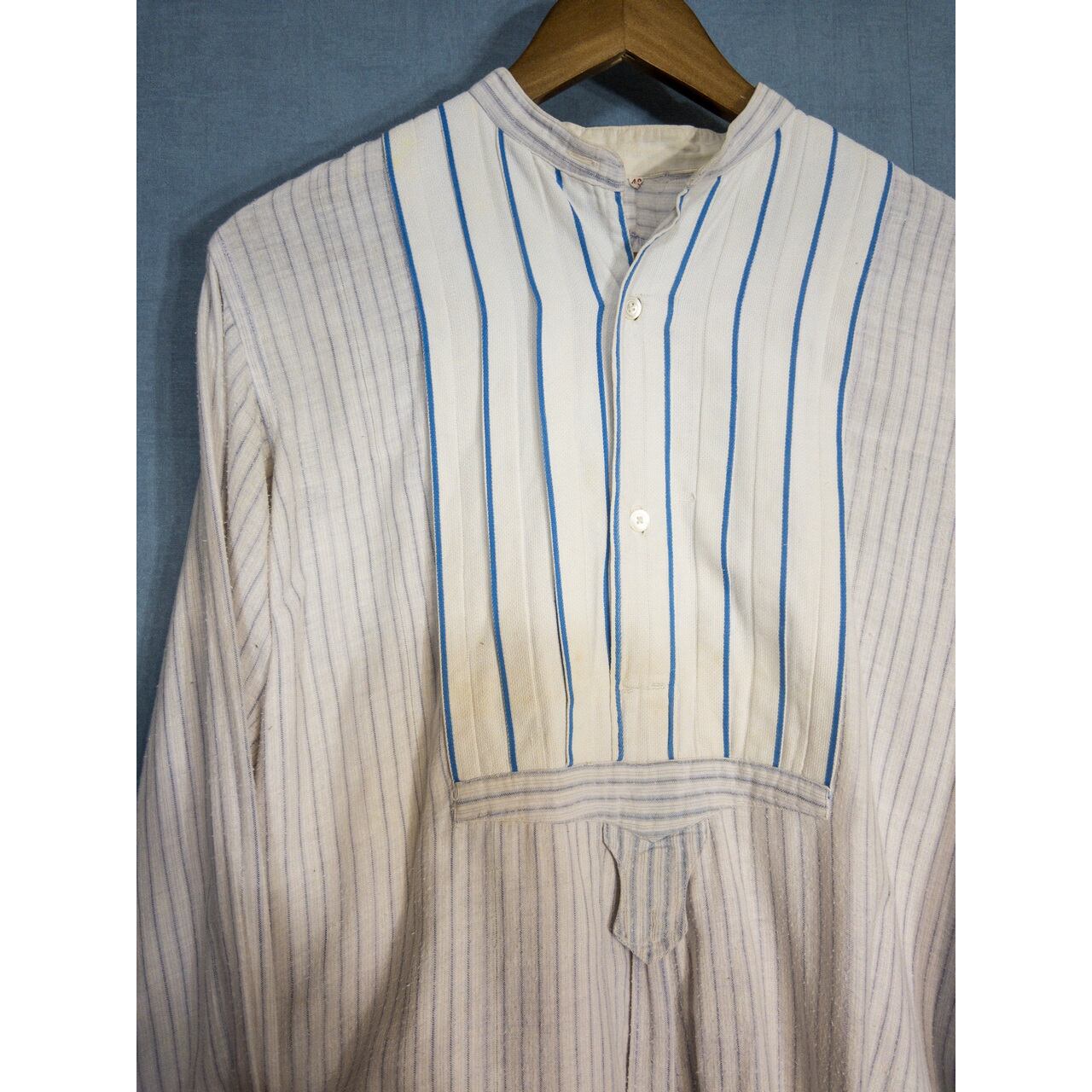 【1920-30s】"French Vintage" Blue Stripe Grandpa(Dress) Shirt