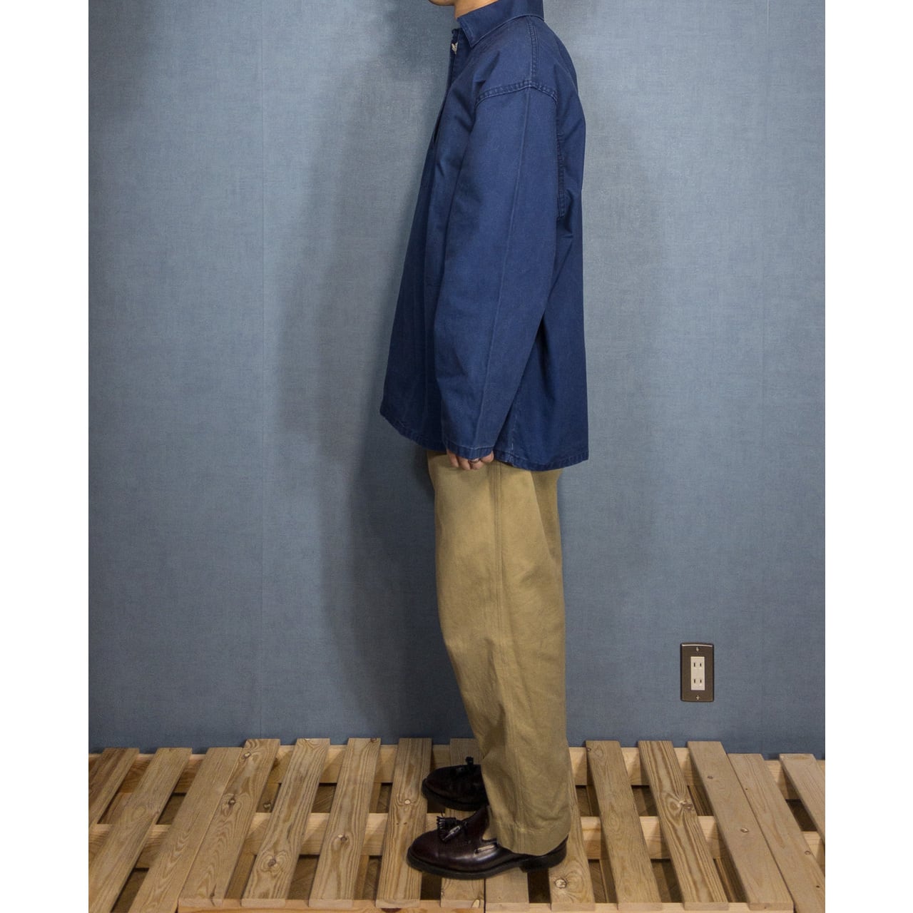 【1960-70s】"French Work" Blue Cotton Fisherman Smock Shirt, Extra Large Size!!