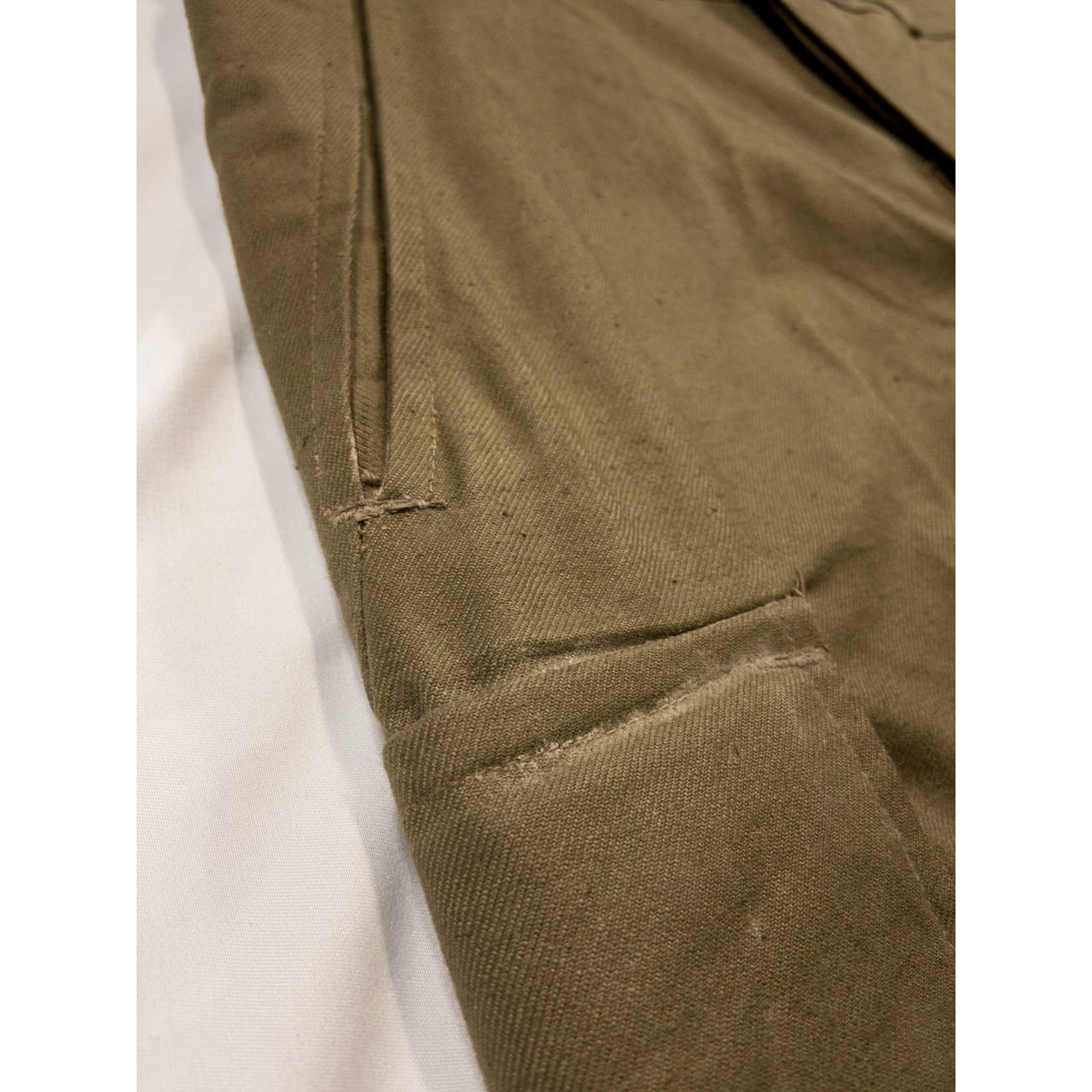 ディテールに関しては、極太かつワイドなシルエットで両太ももあたりのマチ付きカーゴポケットが特徴的。裾のフラップやヒップの丸みを帯びたフラップポケット、二重構造になった膝の補強、ポケット付近の縫製など、随所にフレンチミリタリーのクオリティの高さを感じることができる名品です。