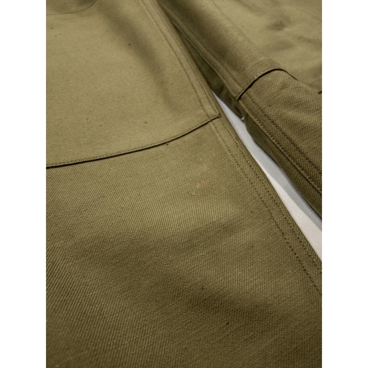 ディテールに関しては、極太かつワイドなシルエットで両太ももあたりのマチ付きカーゴポケットが特徴的。裾のフラップやヒップの丸みを帯びたフラップポケット、二重構造になった膝の補強、ポケット付近の縫製など、随所にフレンチミリタリーのクオリティの高さを感じることができる名品です。