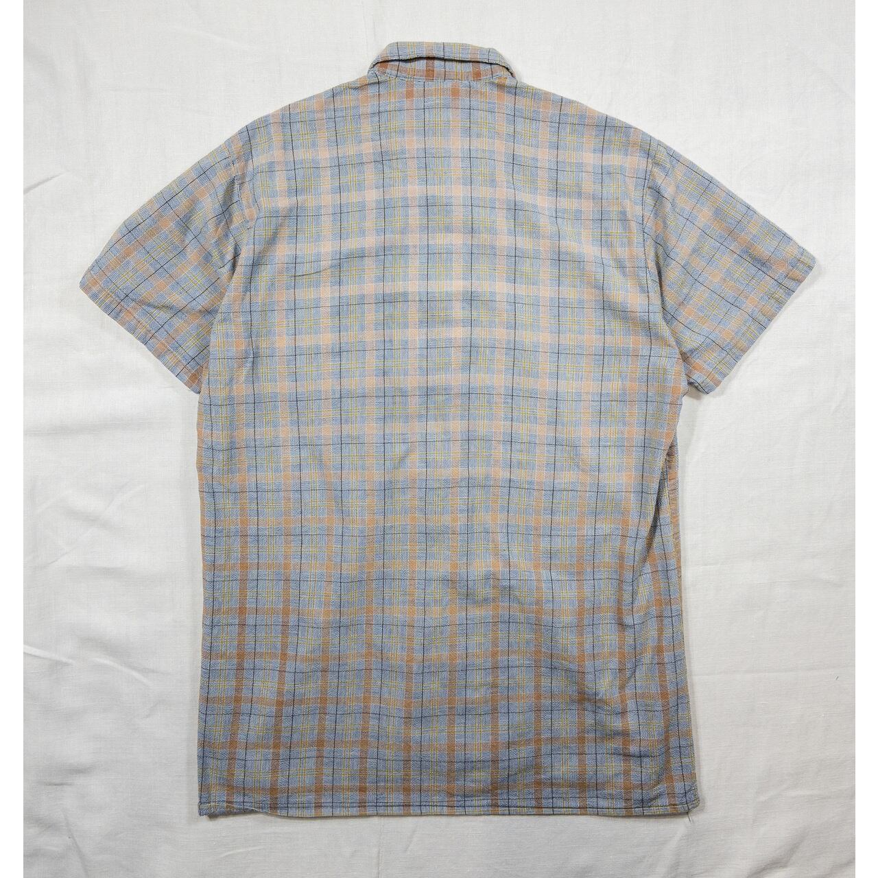 【1960s】”French Work” Cotton Seersucker Yellow × Orange Short Sleeved Shirt