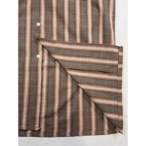 【1960s,DS】"French Work" Cotton Short Sleeved Brown Stripe Full Open Shirt, Deadstock!!