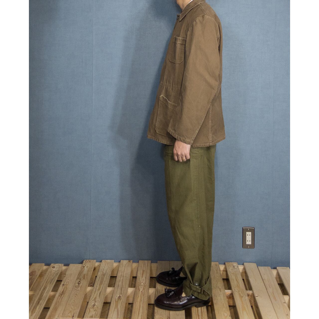 こちらは1940-50年代頃のフランス製ブラウンコットンツイルワークジャケットになります。