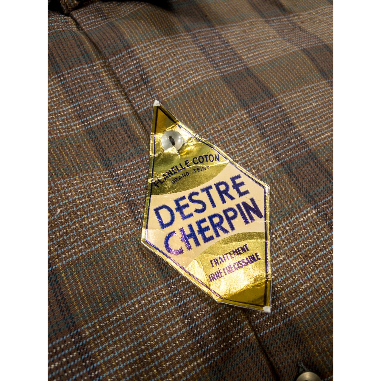 【1970s】"French Work" Brown Check Grandpa/Pullover Shirt, Deadstock!!