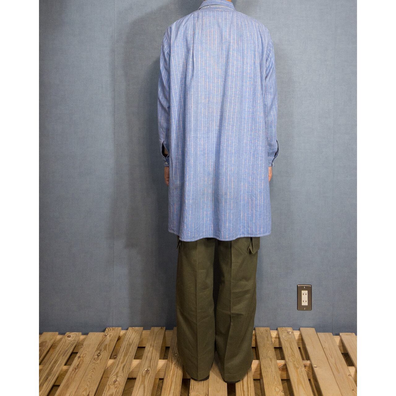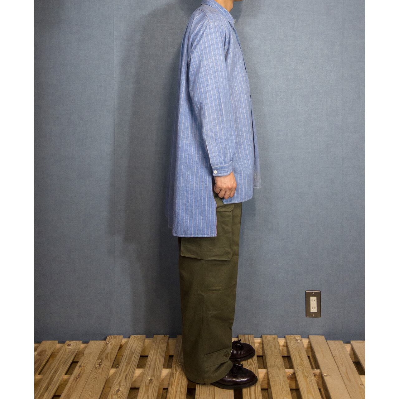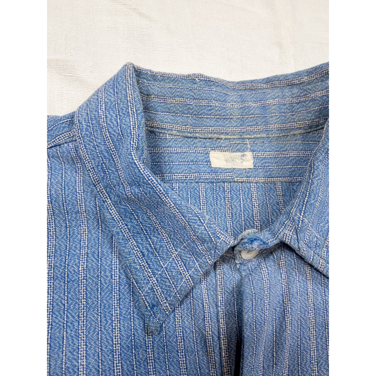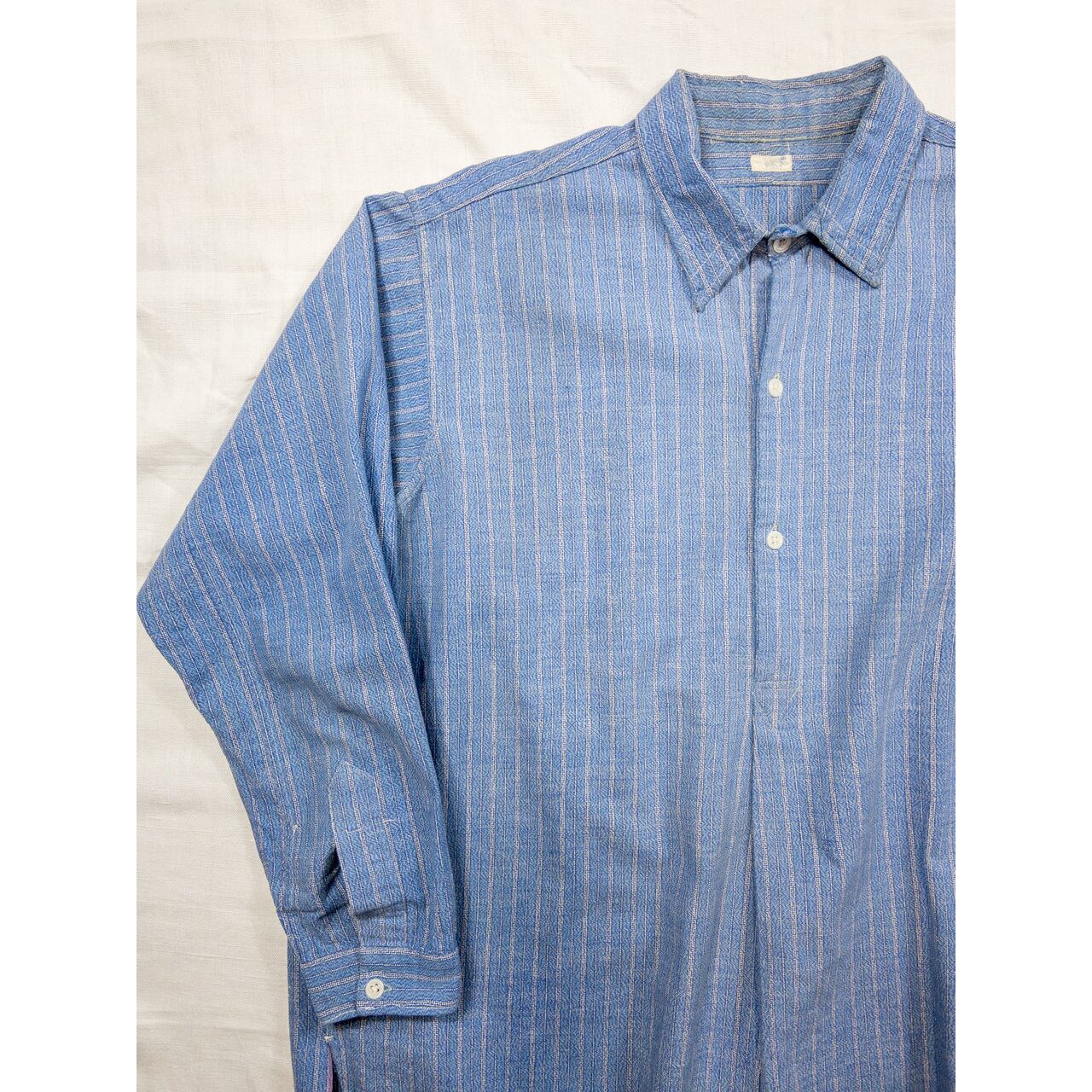 【1950s】"French Work" Blue Striped Cotton Grandpa/Pullover Shirt