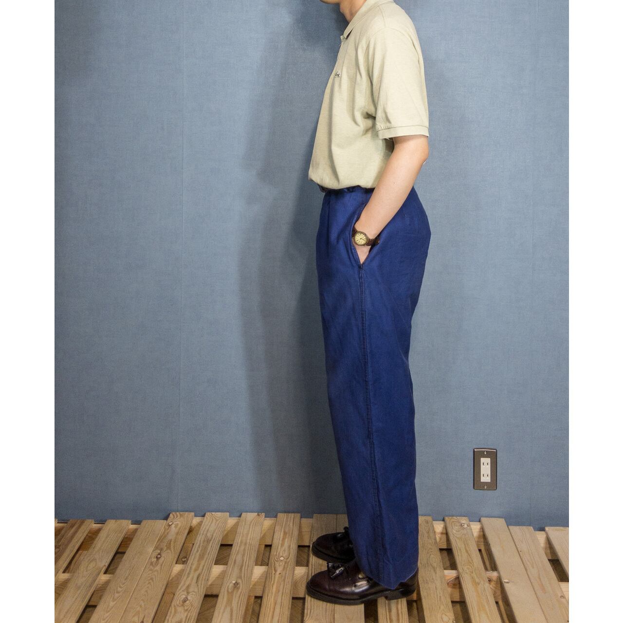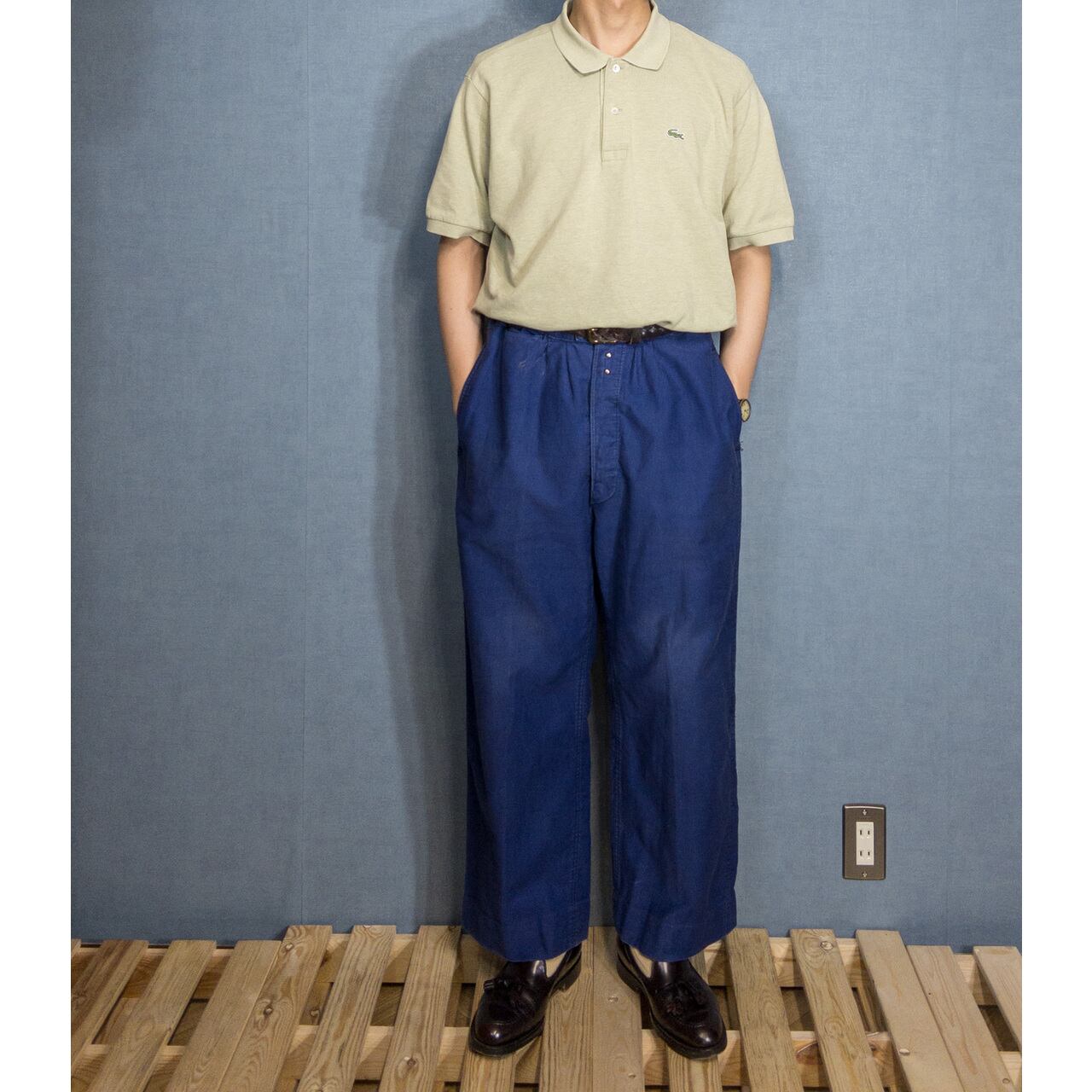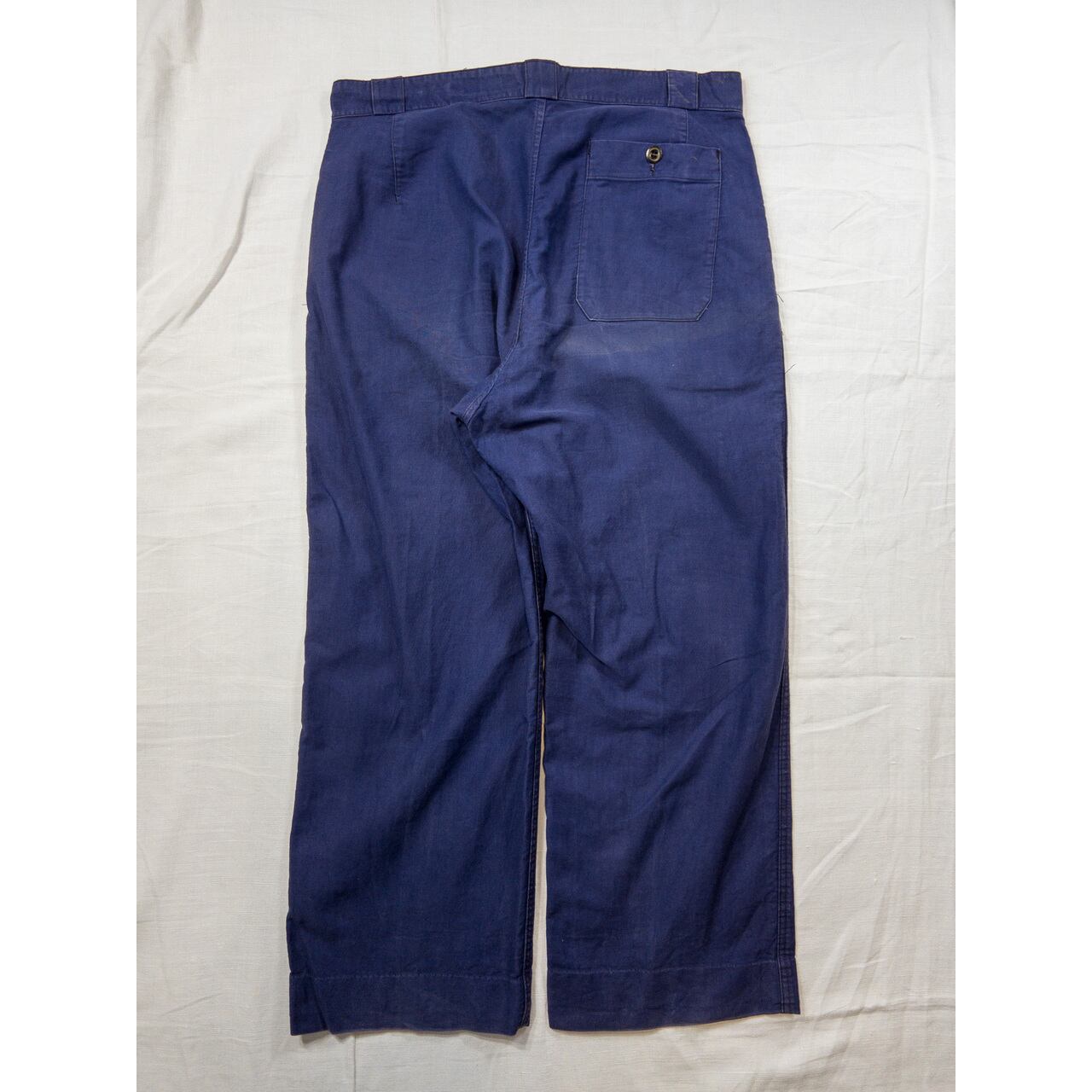 【1940s】"L'Hirondelle" French Blue Thin Twill Work Trousers with Wood Buttons!!