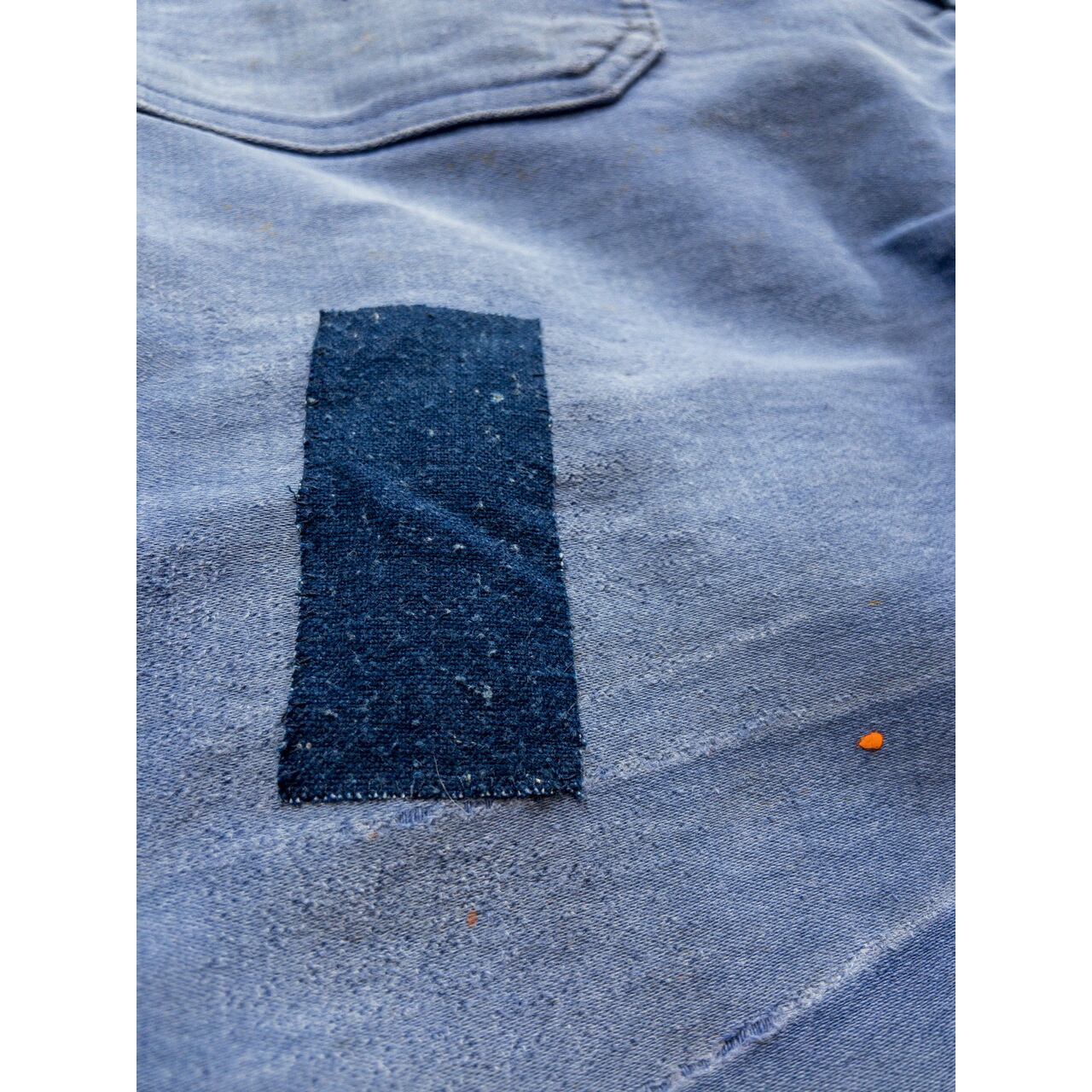 元々は茄子紺のような深いネイビーカラーだったものが、長年タフな労働環境で使用され、全体的にフェードが進んだ素晴らしい個体です。裏側には元の色味の片鱗が残っており、フェードの進行具合が伺えます。