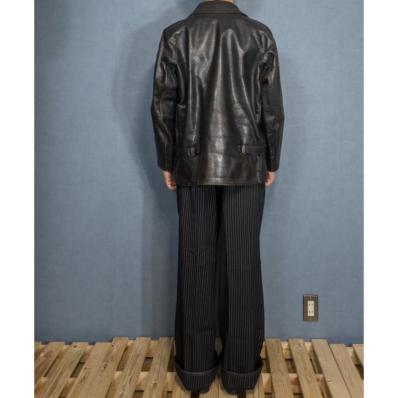 【1940-50s】"Italian Vintage" Black Goatskin Leather Motorcycle Jacket