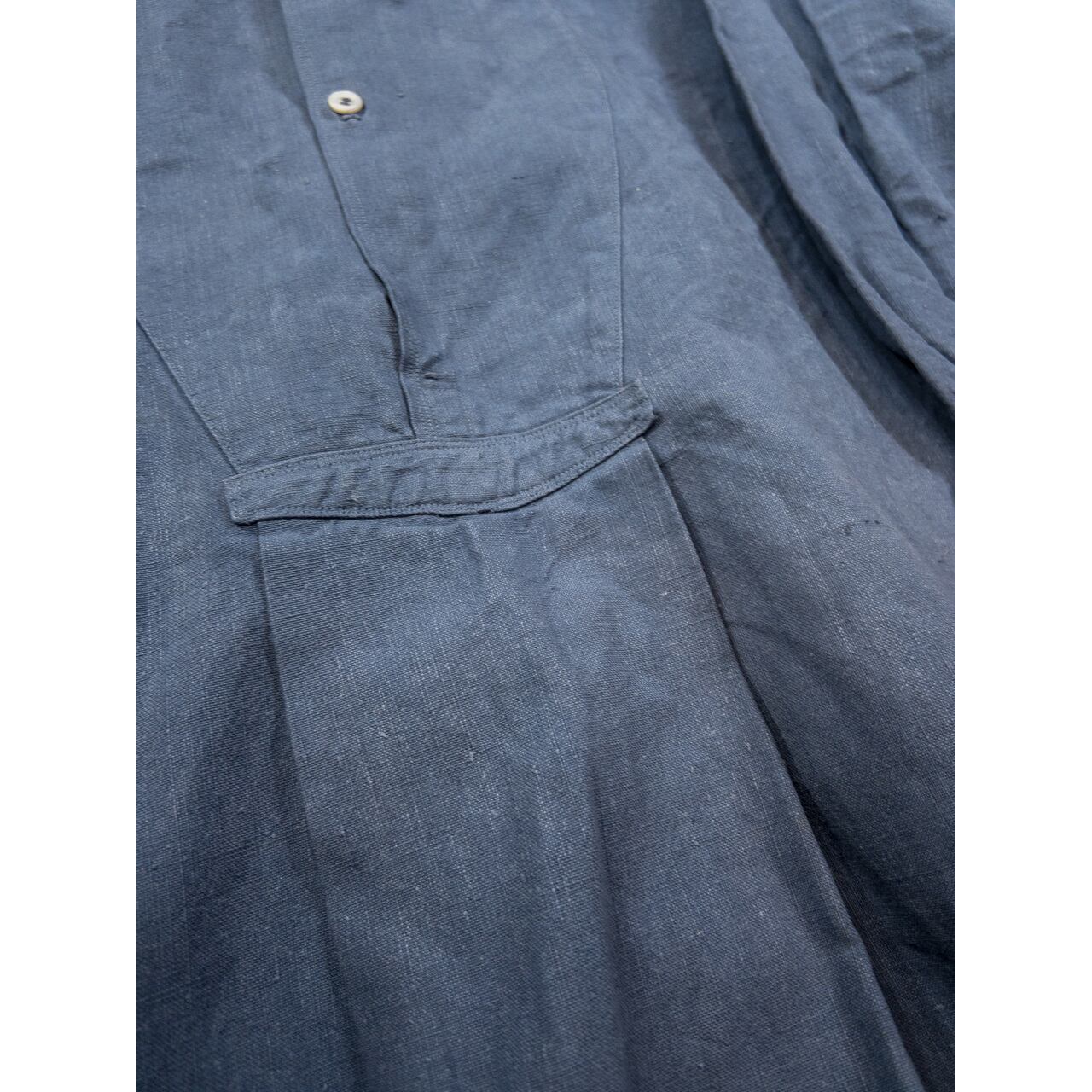 【1920s】"French Antique" Hemp Linen Indigo Blue Shirt, Deadstock!!