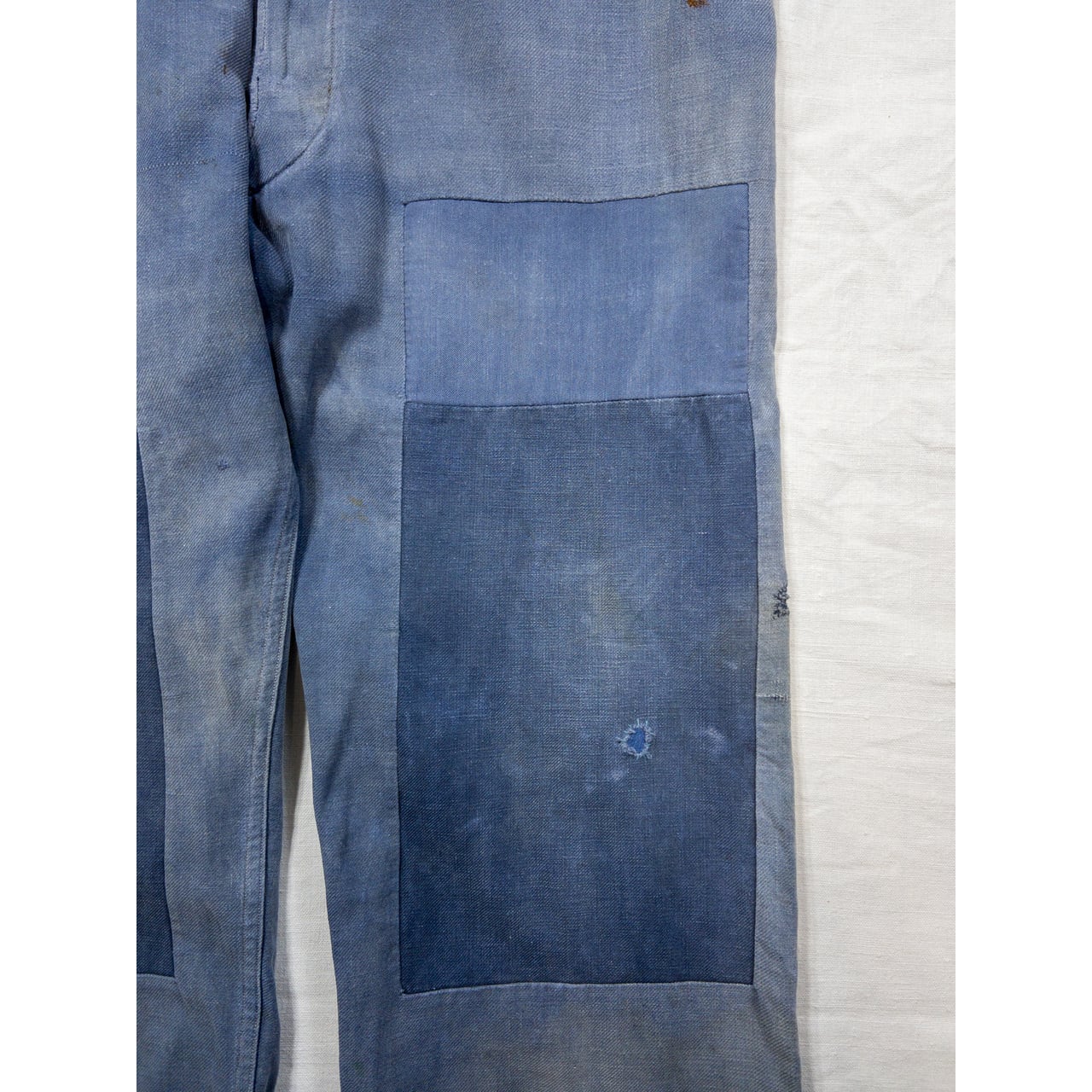 【1940s】"Le Meilleur d'Amiens" French Blue Cotton Twill Faded Patch Work Trousers
